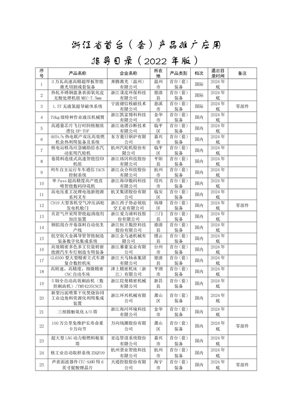 《浙江省首臺(tái)(套)產(chǎn)品推廣應(yīng)用指導(dǎo)目錄》(2022年版)