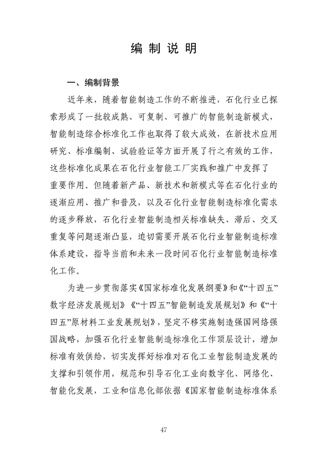 為貫徹落實(shí)《國家智能制造標(biāo)準(zhǔn)體系建設(shè)指南(2021版)》《“十四五”智能制造發(fā)展規(guī)劃》等,充分發(fā)揮標(biāo)準(zhǔn)在石化行業(yè)智能制造發(fā)展過程中的支撐和引領(lǐng)作用,我們組織有關(guān)單位編制完成了《石化行業(yè)智能制造標(biāo)準(zhǔn)體系建設(shè)指南(2022版)》(征求意見稿)