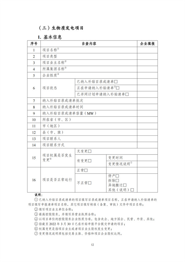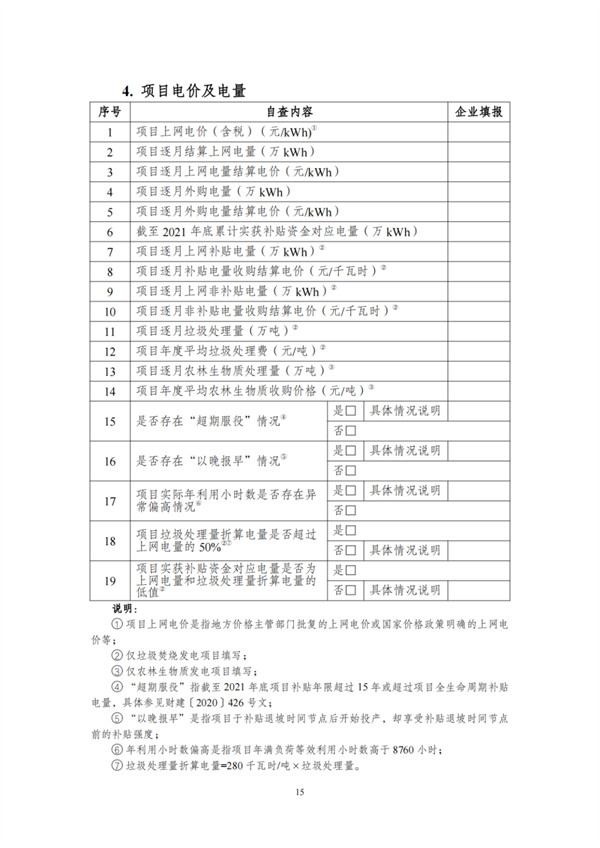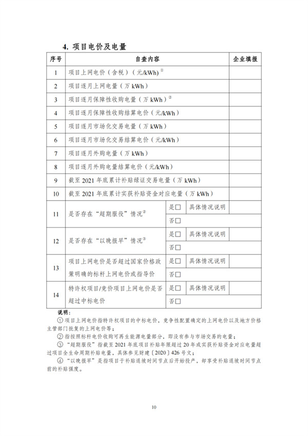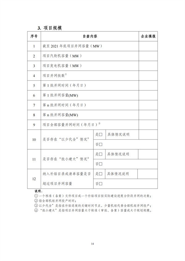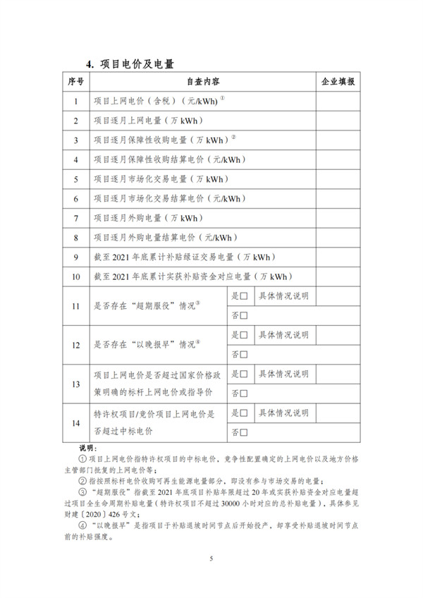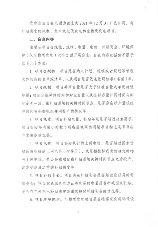 根據(jù)文件,自查對象包括電網(wǎng)和發(fā)電企業(yè),范圍為截止到2021年12月31日已并網(wǎng)有補貼需求的全口徑可再生能源發(fā)電項目,主要為風(fēng)電、集中式光伏電站以及生物質(zhì)發(fā)電項目。