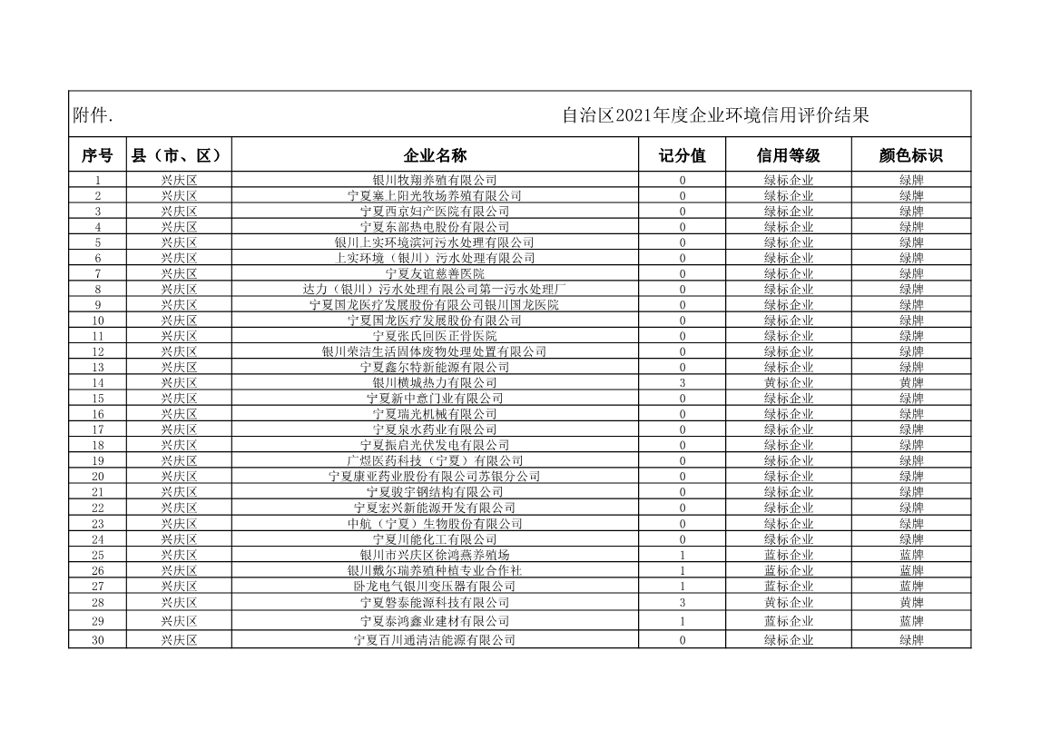 《寧夏公布2021年度全區(qū)企業(yè)環(huán)境信用評價結(jié)果 》