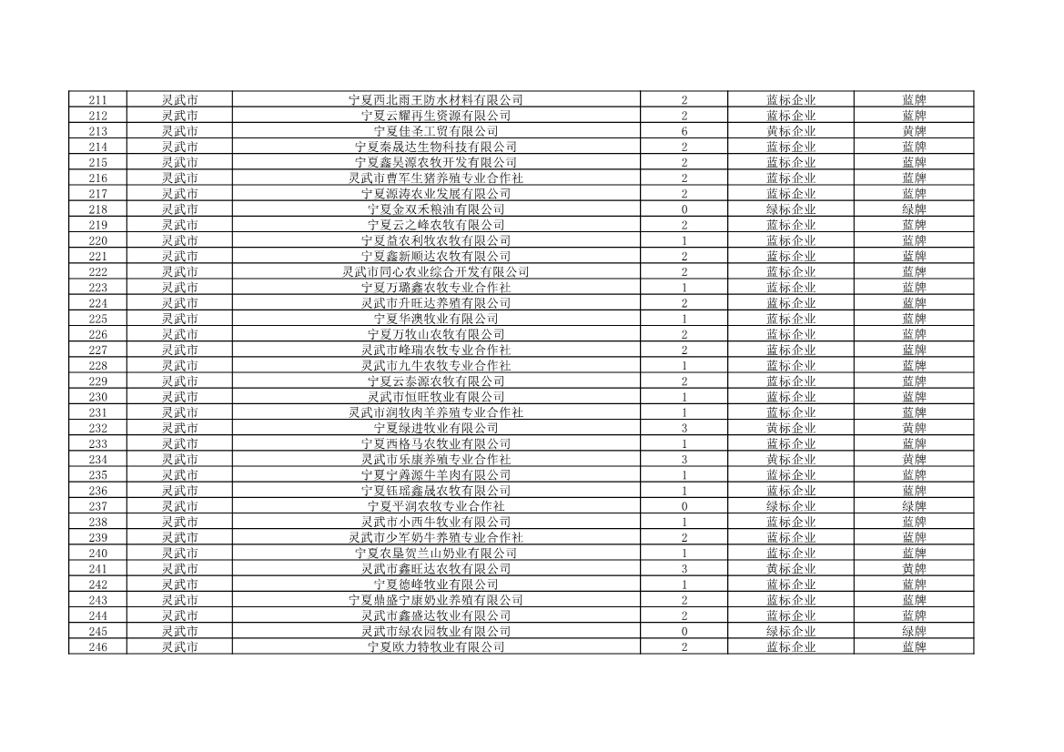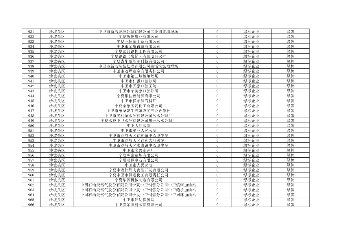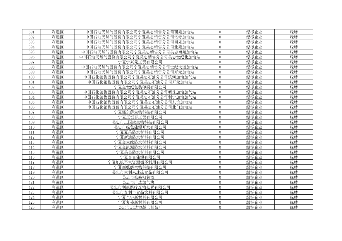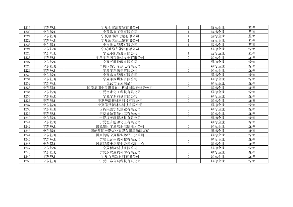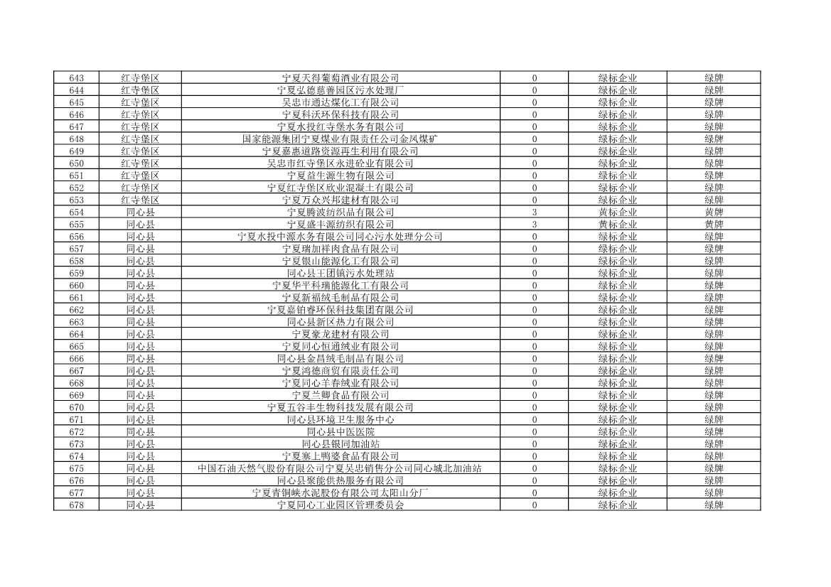 根據(jù)《中華人民共和國環(huán)境保護法》《企業(yè)信息公示暫行條例》等法律、行政法規(guī)和《企業(yè)環(huán)境信用評價辦法(試行)》(環(huán)發(fā)〔2013〕150號)、《寧夏回族自治區(qū)企業(yè)環(huán)境信用評價辦法》(寧環(huán)規(guī)發(fā)〔2019〕5號)規(guī)定,自治區(qū)生態(tài)環(huán)境廳組織全區(qū)各地級市生態(tài)環(huán)境部門開展了2021年全區(qū)企業(yè)環(huán)境信用評價工作。全區(qū)參評企業(yè)1250家,其中綠牌969家、藍牌226家、黃牌52家、紅牌3家。現(xiàn)將評價結(jié)果予以公布。