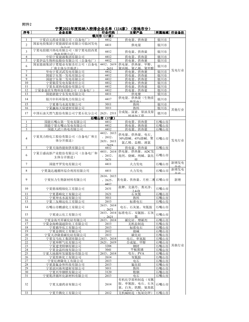 各地市及寧東管委會生態(tài)環(huán)境局負責組織督促行政區(qū)域內(nèi)重點排放單位,按時完成報送溫室氣體排放報告、信息公開等工作,在2022年3月29日前,結(jié)合本通知附件1中行業(yè)子類對《寧夏2021年度擬納入控排企業(yè)名單》(附件2)進行核實確認,對名單中停產(chǎn)企業(yè),出具情況說明并加蓋公章后報送至自治區(qū)生態(tài)環(huán)境廳。同時,負責將本通知送達各重點排放單位。《寧夏關(guān)于做好全區(qū)2022年重點排放單位溫室氣體排放報告管理相關(guān)重點工作的通知》