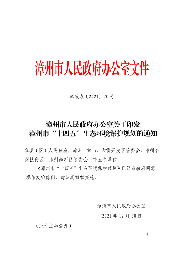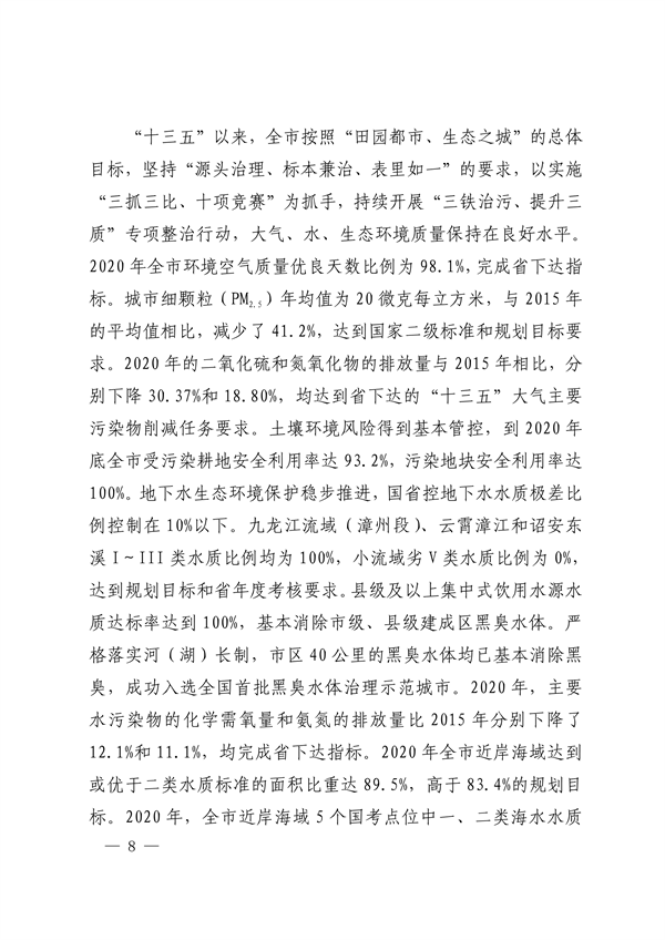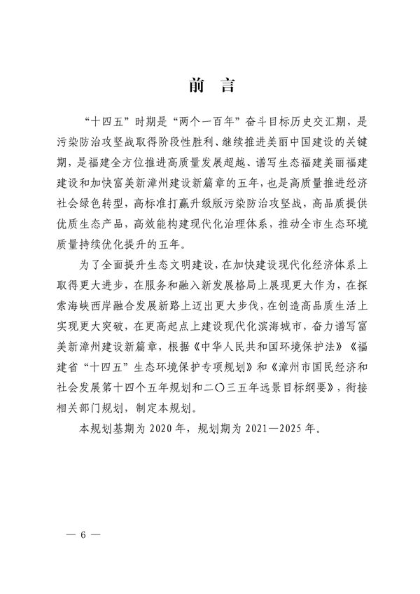 《漳州市“十四五”生態(tài)環(huán)境保護(hù)規(guī)劃》(漳政辦【2021】70號(hào))