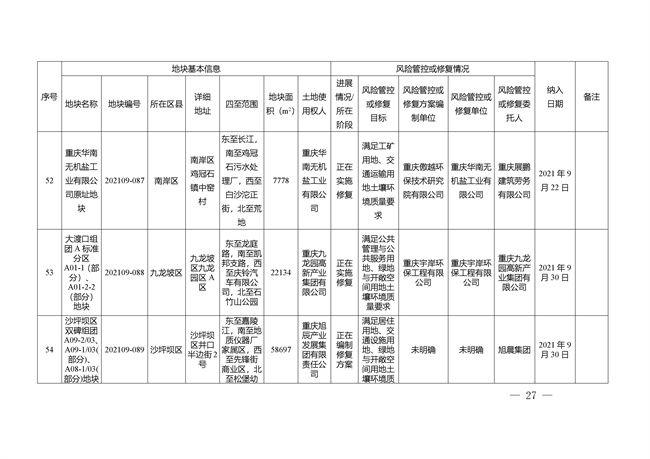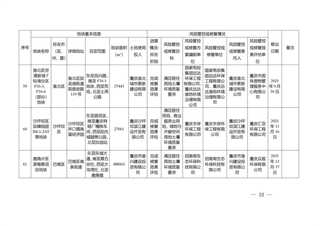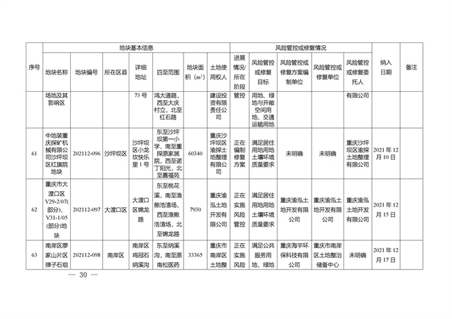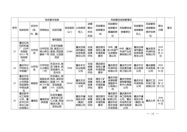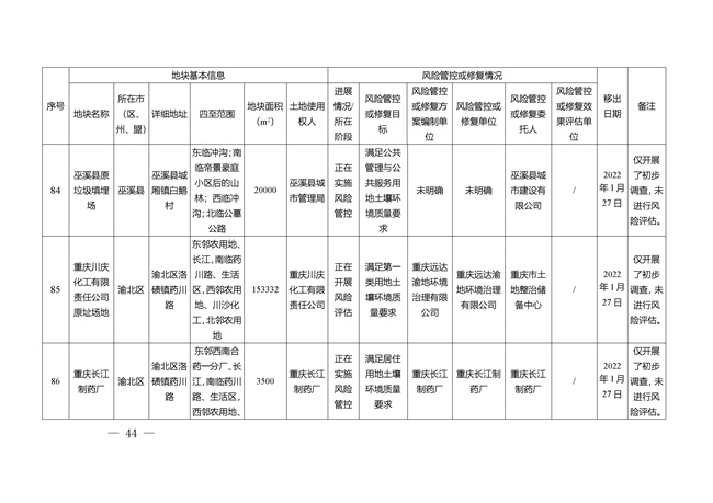 《重慶市建設(shè)用地土壤污染風(fēng)險管控和修復(fù)名錄》(截至2022年3月29日)