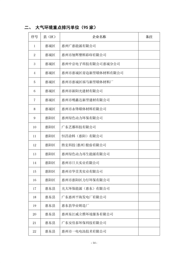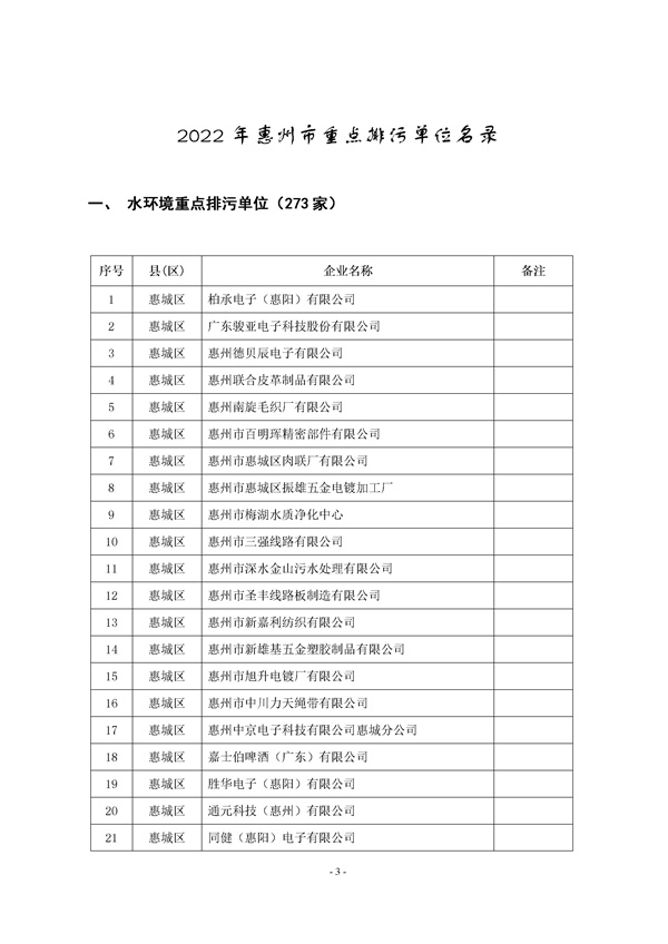 《惠州市2022年重點(diǎn)排污單位名錄》