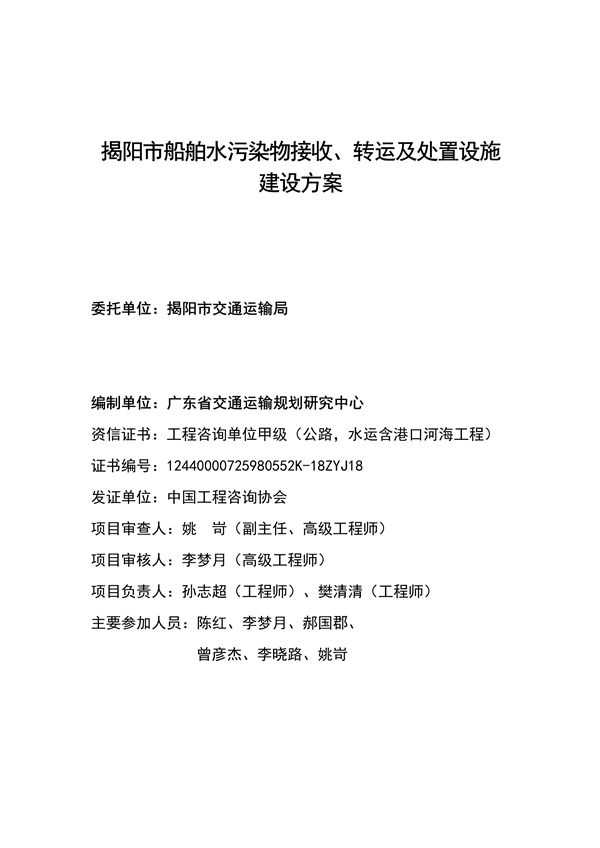 《揭陽市船舶水污染物接收、轉(zhuǎn)運及處置設施建設方案》