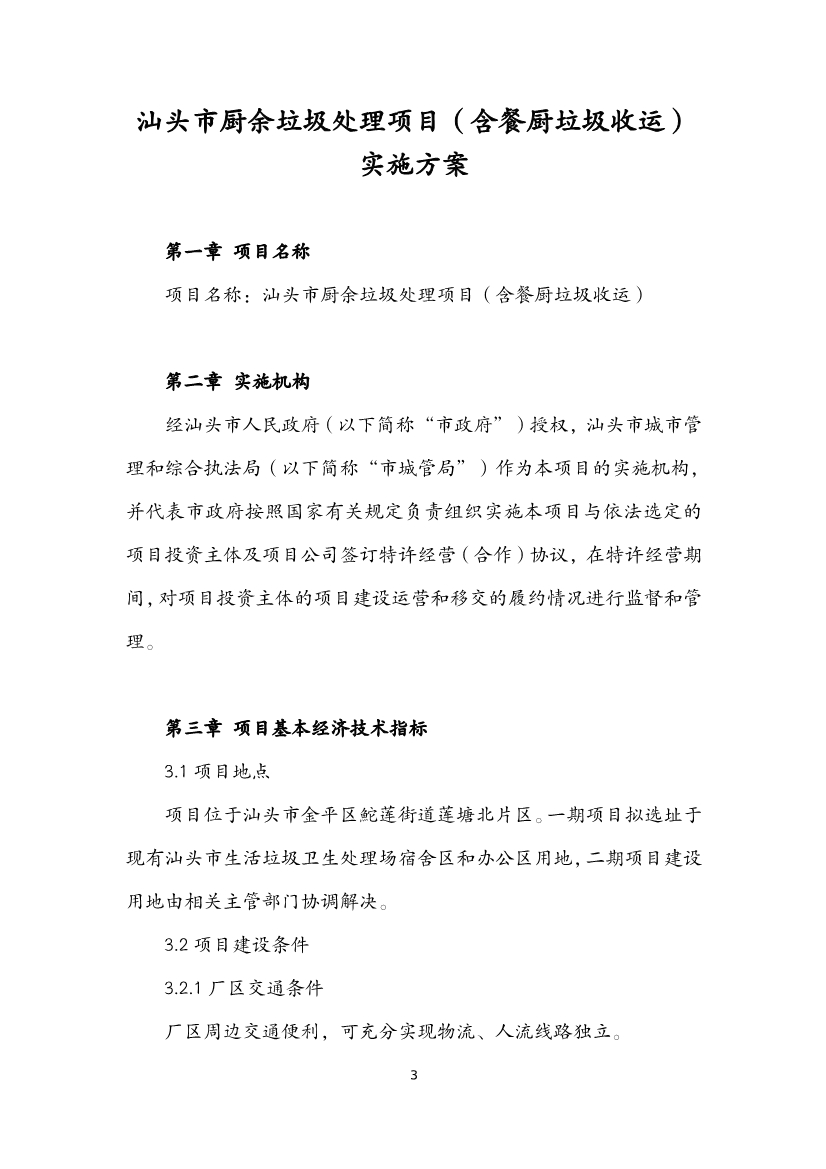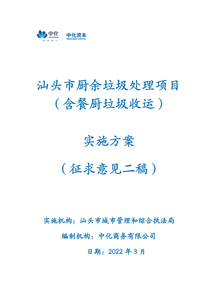 《汕頭市廚余垃圾處理項目(含餐廚垃圾收運(yùn))實施方案》