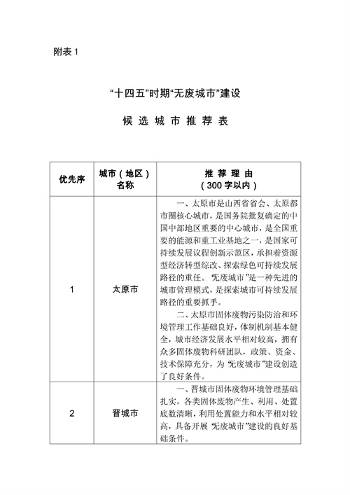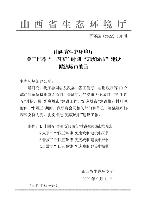 《山西省“十四五”時期“無廢城市”建設(shè)候選城市》(晉環(huán)函【2022】131號)