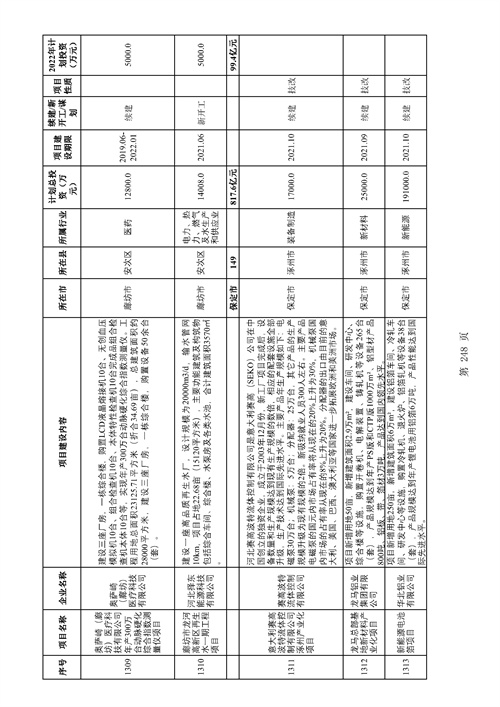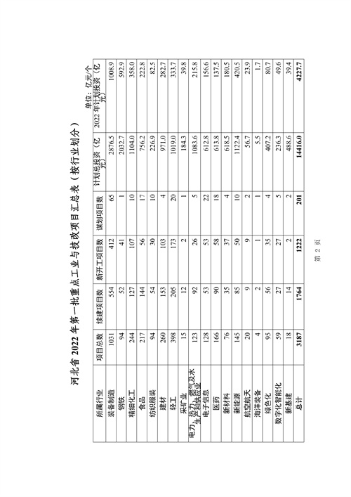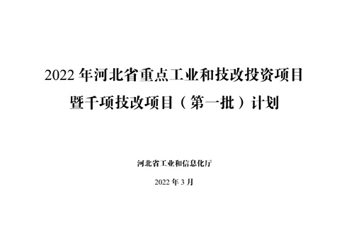 《2022年河北省重點(diǎn)工業(yè)和技改投資項(xiàng)目暨千項(xiàng)技改項(xiàng)目(第一批)計(jì)劃》