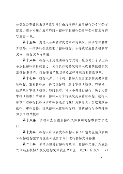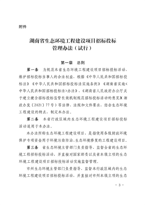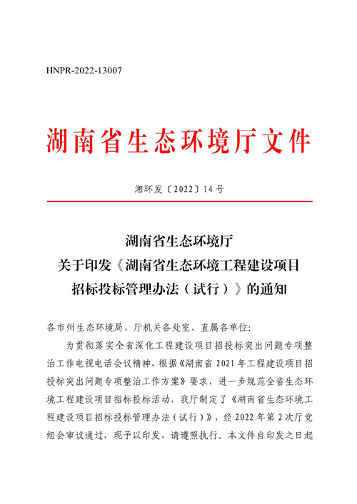 《湖南省生態(tài)環(huán)境工程建設(shè)項(xiàng)目招標(biāo)投標(biāo)管理辦法(試行)》(湘環(huán)發(fā)【2022】14號)