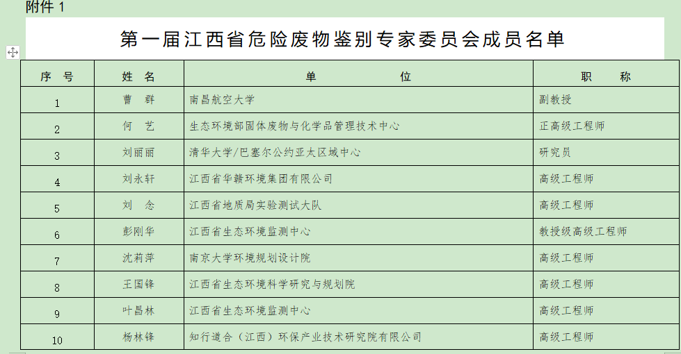 附件:1.第一屆江西省危險(xiǎn)廢物鑒別專家委員會(huì)成員名單