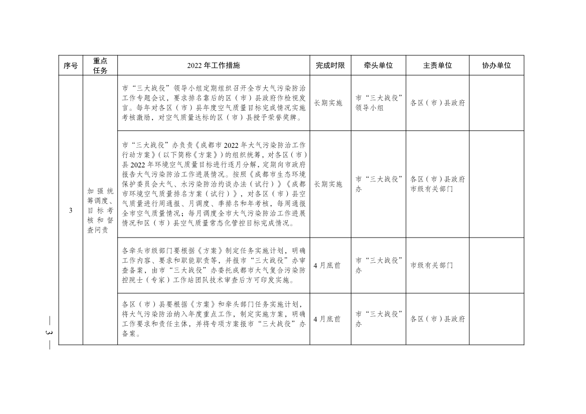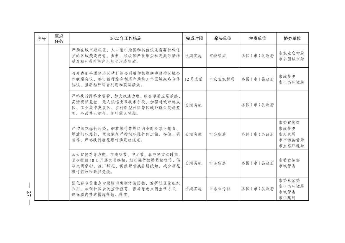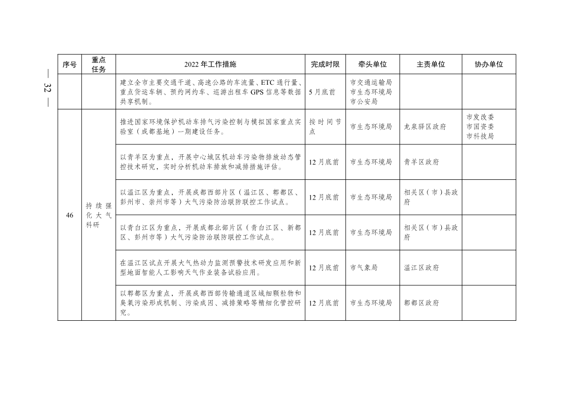 成都市大氣 水 土壤污染防治“三大戰(zhàn)役”領(lǐng)導(dǎo)小組關(guān)于印發(fā)《成都市2022年大氣污染防治工作行動方案》的通知