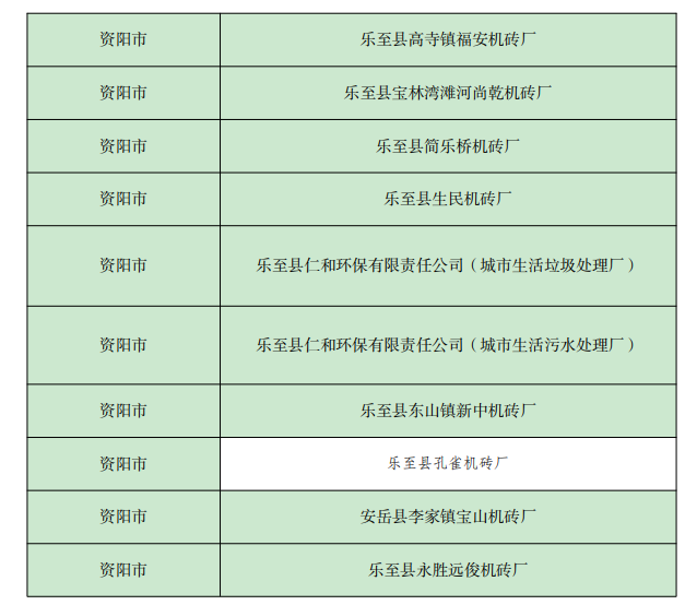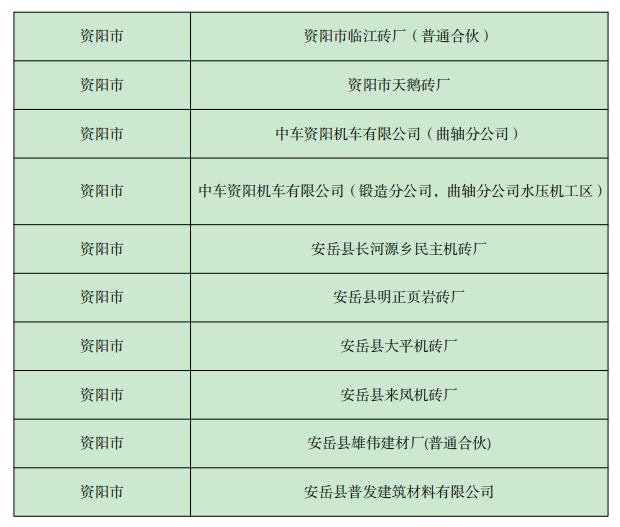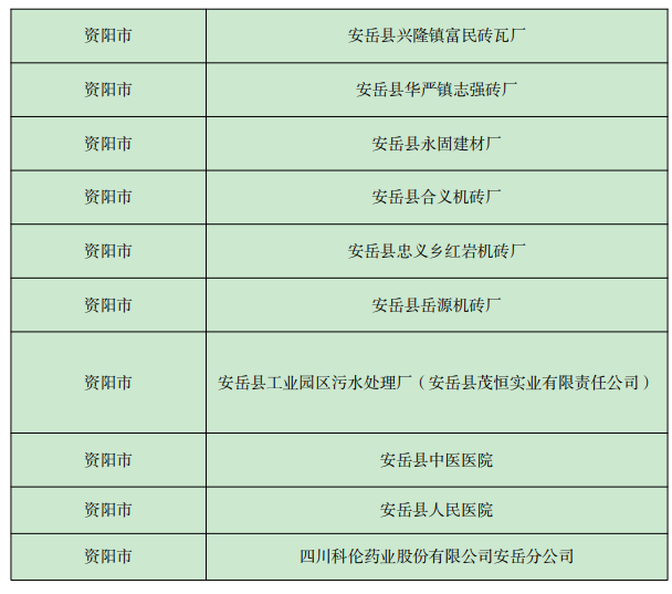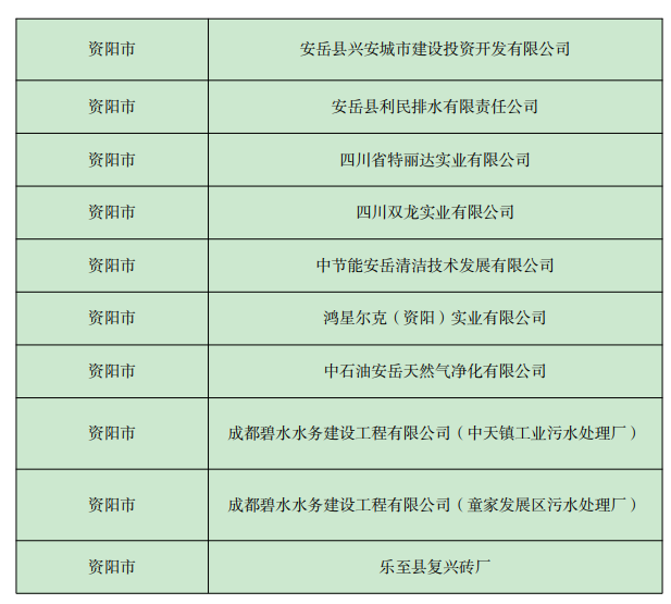 《四川省 2022年資陽(yáng)市環(huán)境信息依法披露企業(yè)名單》