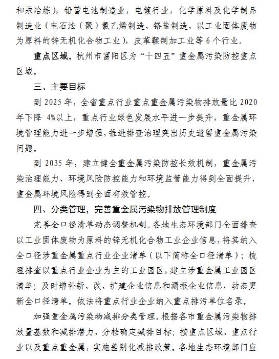 《浙江省重金屬污染防控工作方案》( 征求意見稿 )