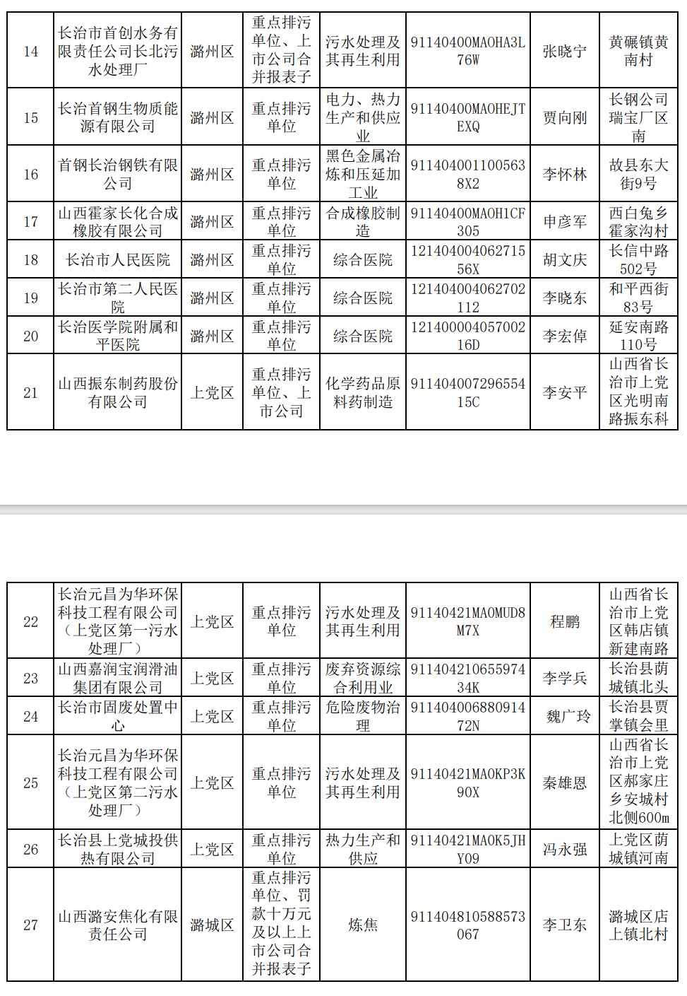 附件:2022年度長(zhǎng)治市環(huán)境信息依法披露企業(yè)名單(征求意見(jiàn)稿)