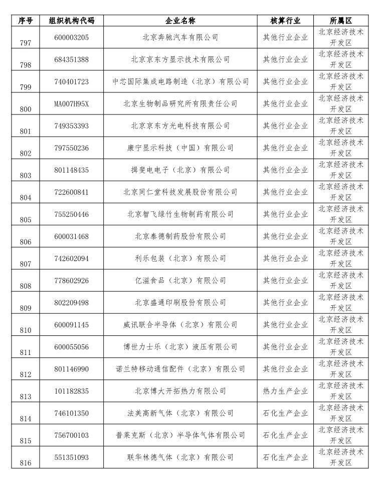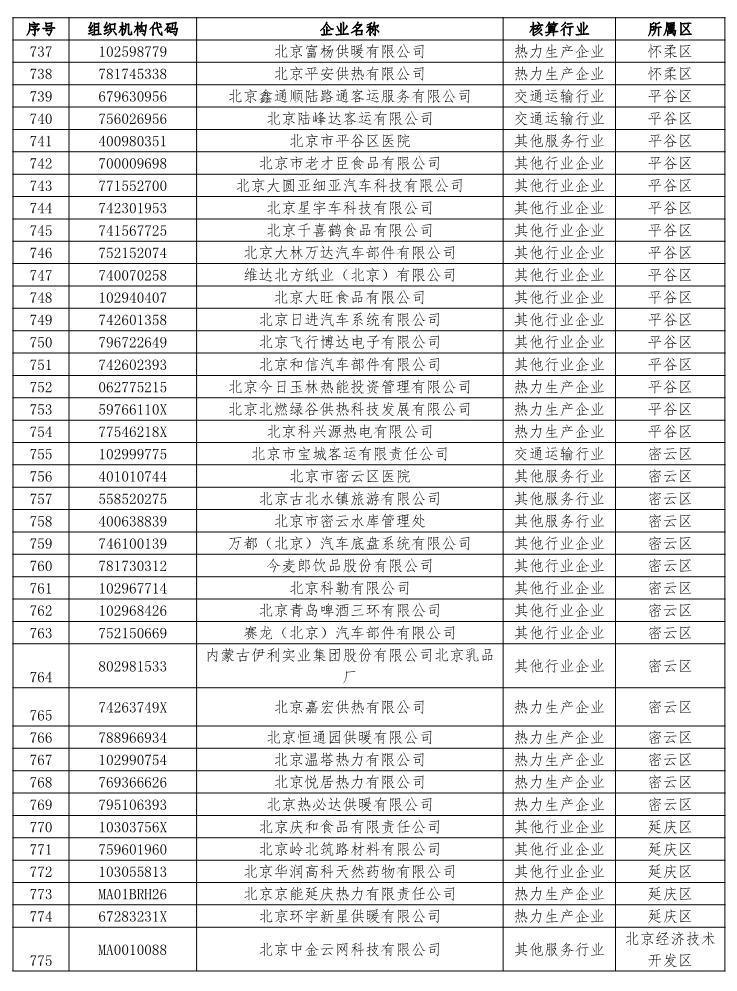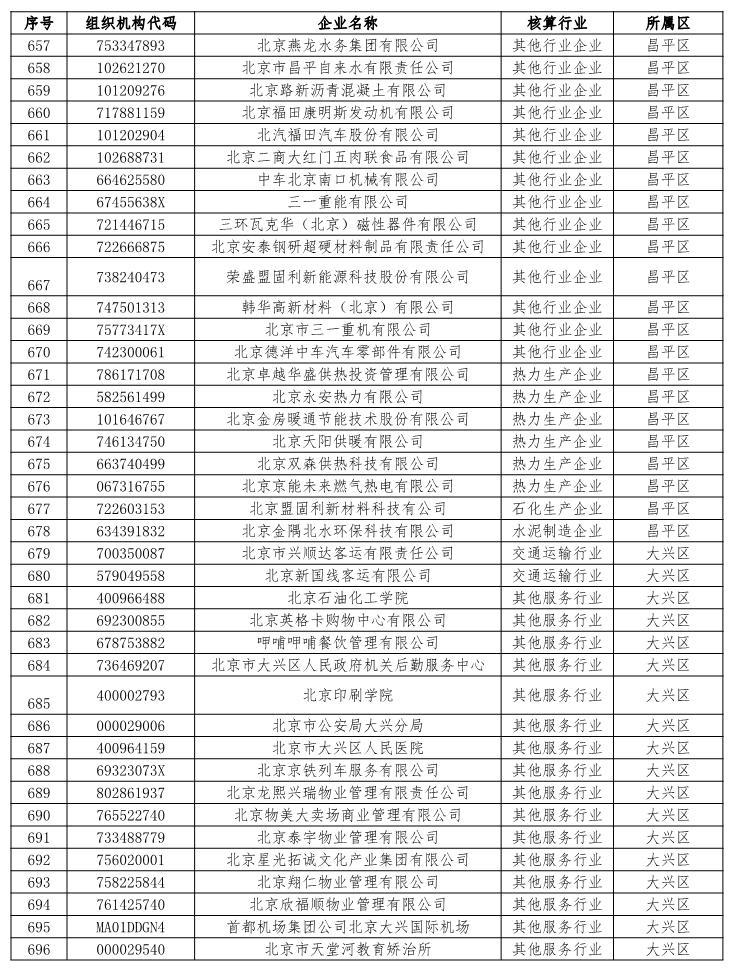 《北京市重點(diǎn)碳排放單位及一般報(bào)告單位名單》