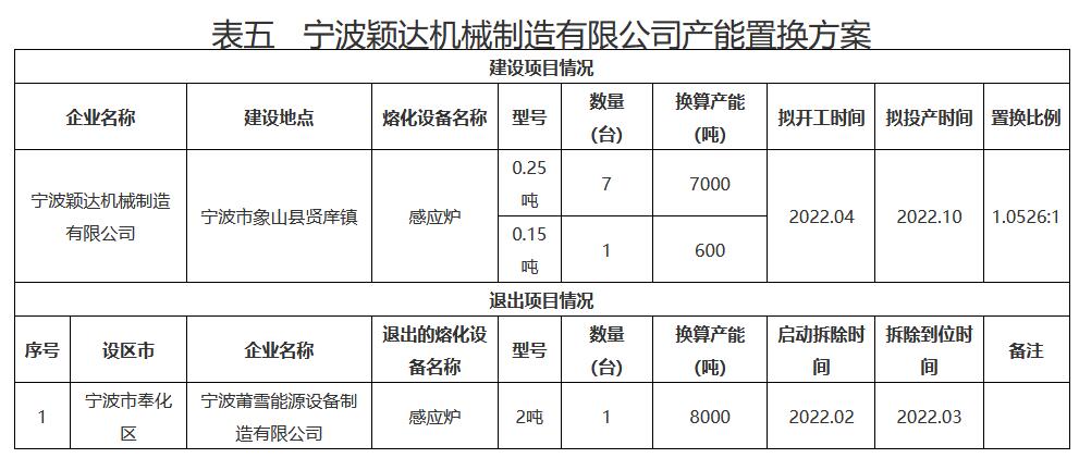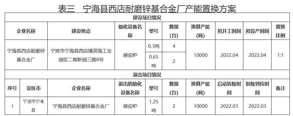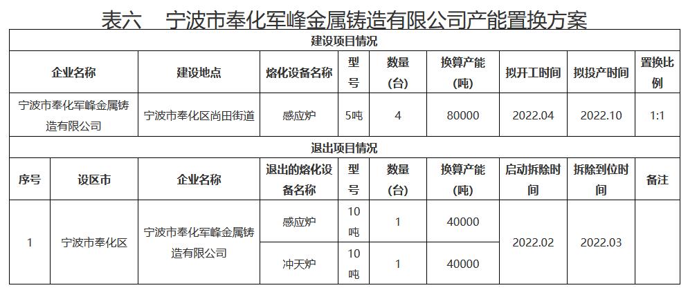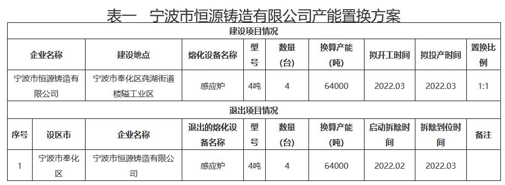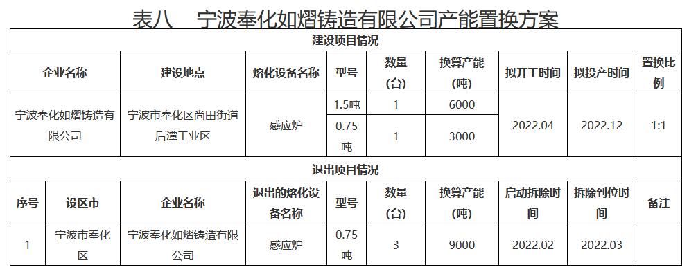日前,浙江公示《2022年第三批鑄造產(chǎn)能置換方案》。詳情如下:
