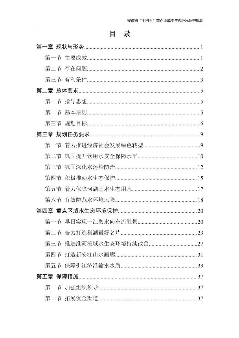 《安徽省“十四五”重點流域水生態(tài)環(huán)境保護規(guī)劃》