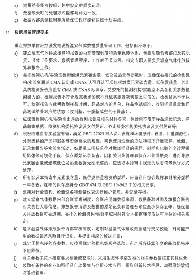 組織發(fā)電行業(yè)重點排放單位,按照《企業(yè)溫室氣體排放核算方法與報告指南 發(fā)電設施(2022年修訂版)》要求,于2022年3月31日前通過環(huán)境信息平臺更新數(shù)據(jù)質(zhì)量控制計劃,并依據(jù)更新的數(shù)據(jù)質(zhì)量控制計劃,自2022年4月起在每月結(jié)束后的40日內(nèi),通過具有中國計量認證(CMA)資質(zhì)或經(jīng)過中國合格評定國家認可委員會(CNAS)認可的檢驗檢測機構(gòu)對元素碳含量等參數(shù)進行檢測,并對以下臺賬和原始記錄通過環(huán)境信息平臺進行存證: