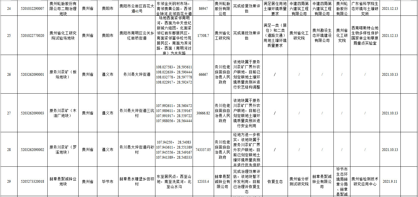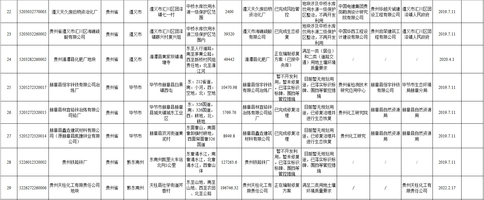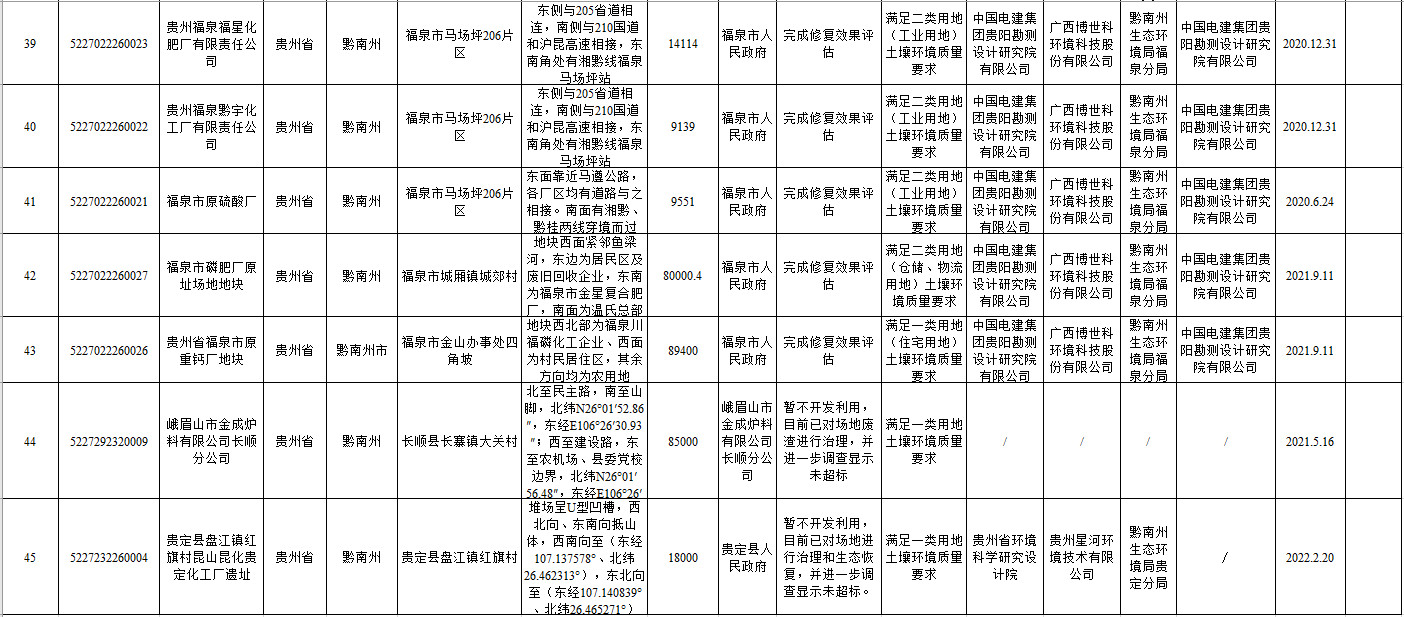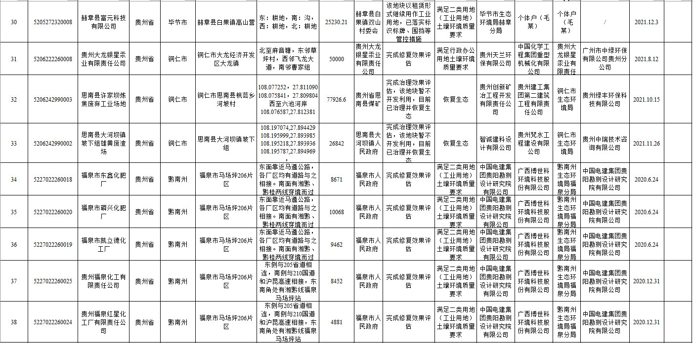 《貴州省建設(shè)用地土壤污染風(fēng)險管控和修復(fù)名錄(2022年第一批)》