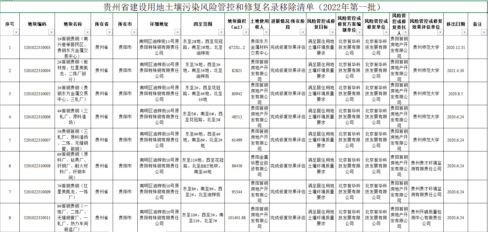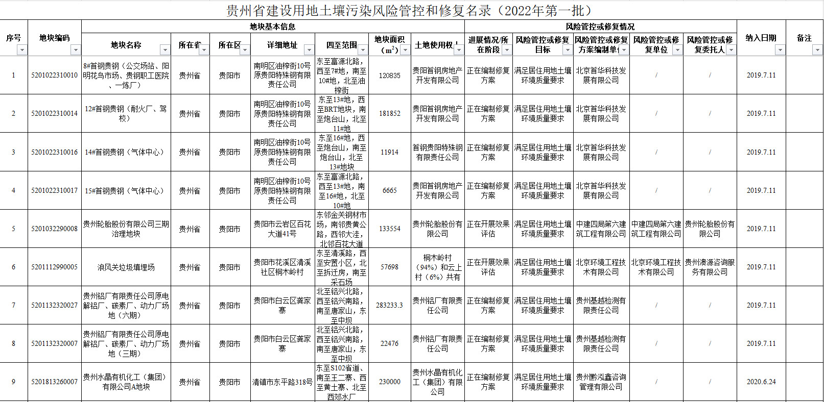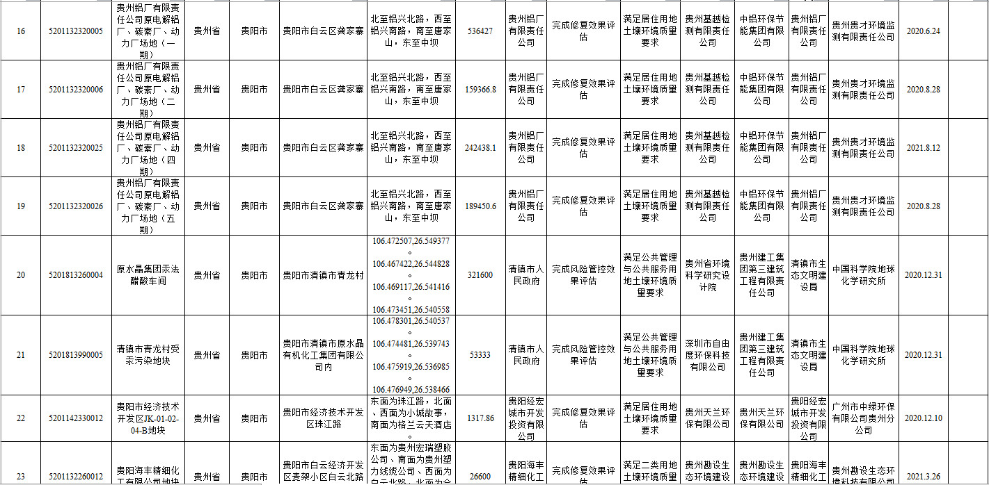 《貴州省建設(shè)用地土壤污染風(fēng)險管控和修復(fù)名錄(2022年第一批)》