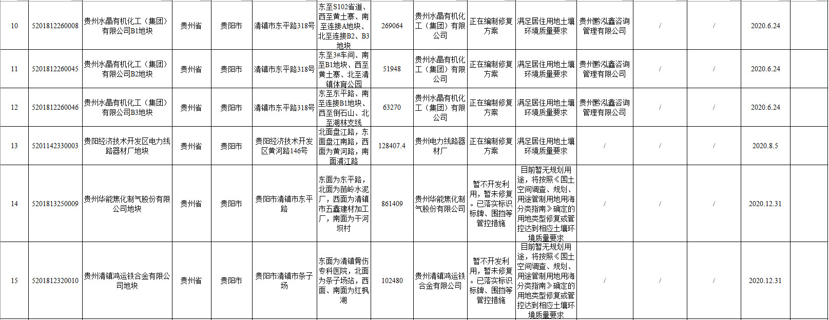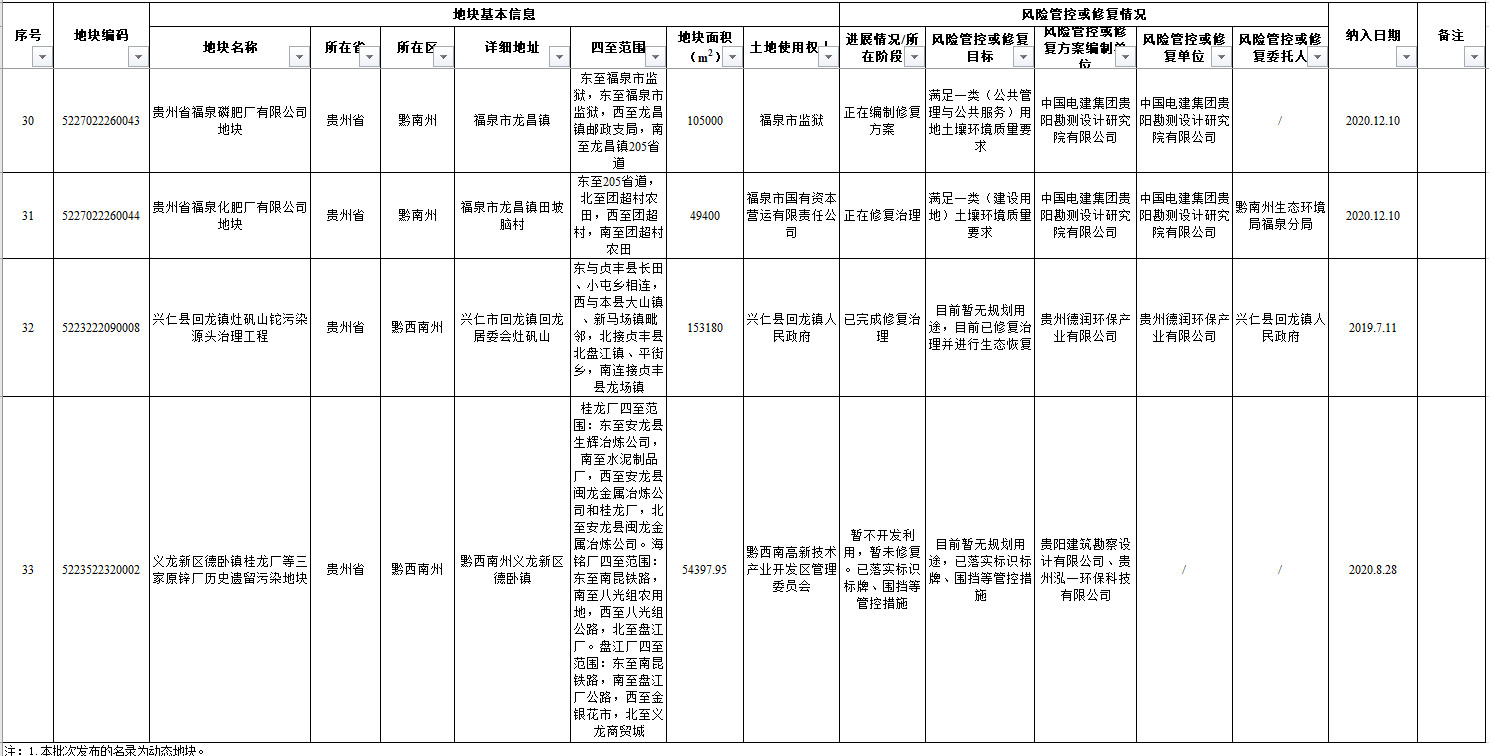 貴州省生態(tài)環(huán)境廳貴州省自然資源廳關(guān)于發(fā)布貴州省建設(shè)用地土壤污染風(fēng)險管控和修復(fù)名錄(2022年第一批)的通知