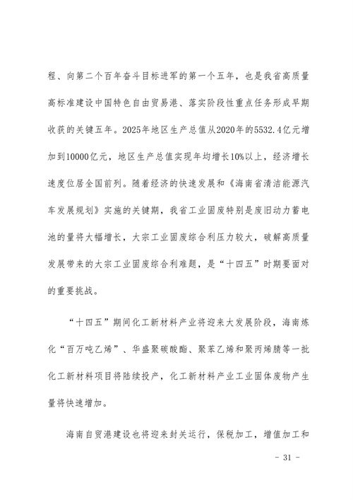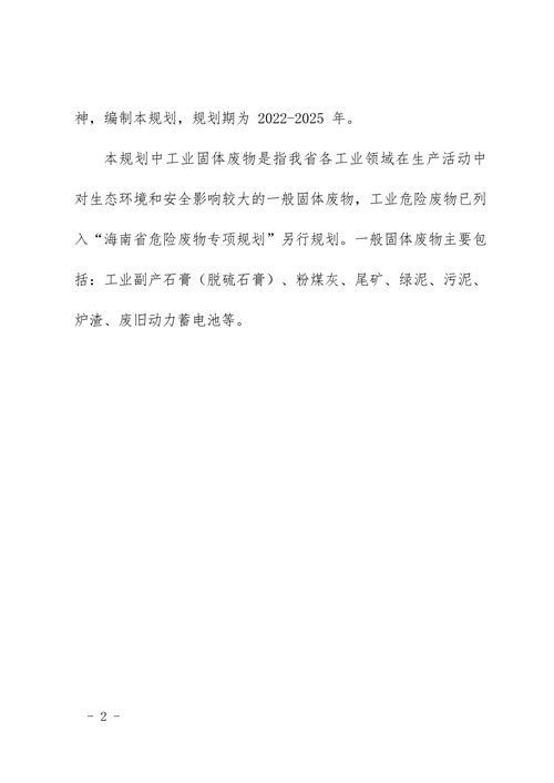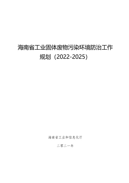 《海南省工業(yè)固體廢物污染環(huán)境防治工作規(guī)劃(2022-2025)(征求意見稿)》