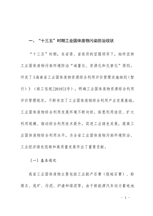 附件:海南省工業(yè)固體廢物污染環(huán)境防治工作規(guī)劃(2022-2025)(征求意見稿)大牛工程師