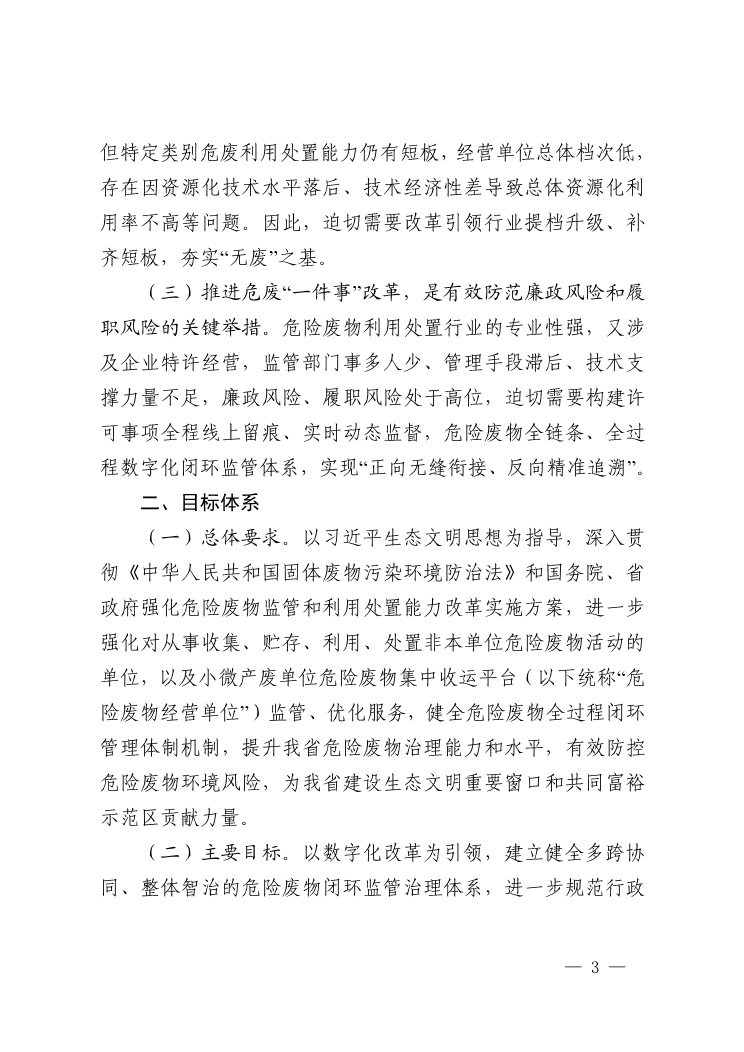 浙江省生態(tài)環(huán)境廳印發(fā)深化危險(xiǎn)廢物閉環(huán)監(jiān)管“一件事”改革方案的通知,為加強(qiáng)危險(xiǎn)廢物環(huán)境監(jiān)管,以數(shù)字化改革為牽引,重塑責(zé)任鏈、監(jiān)管鏈,不斷提升危險(xiǎn)廢物監(jiān)管和危險(xiǎn)廢物利用處置能力,保障環(huán)境安全和人民群眾身體健康,制定了《深化危險(xiǎn)廢物閉環(huán)監(jiān)管“一件事”改革方案》。