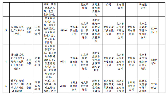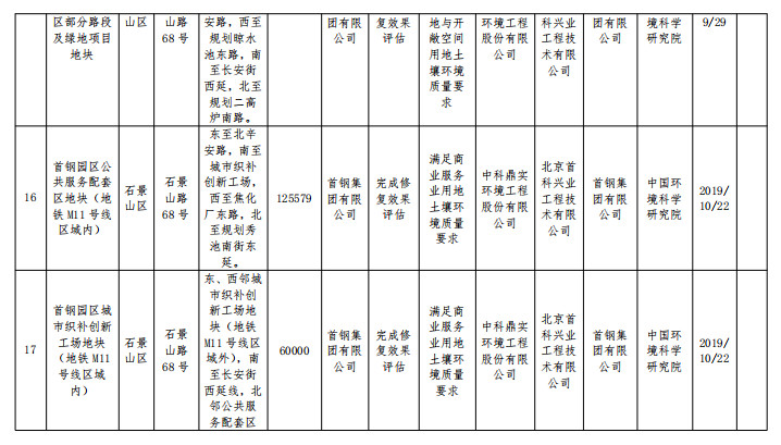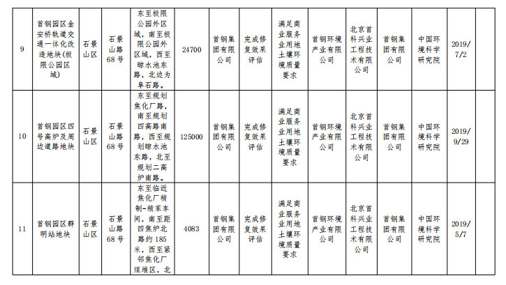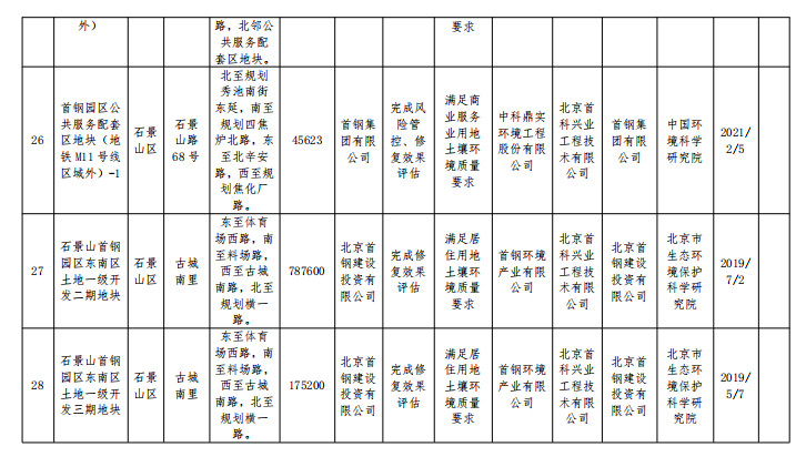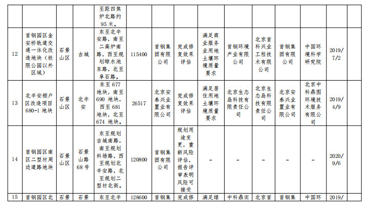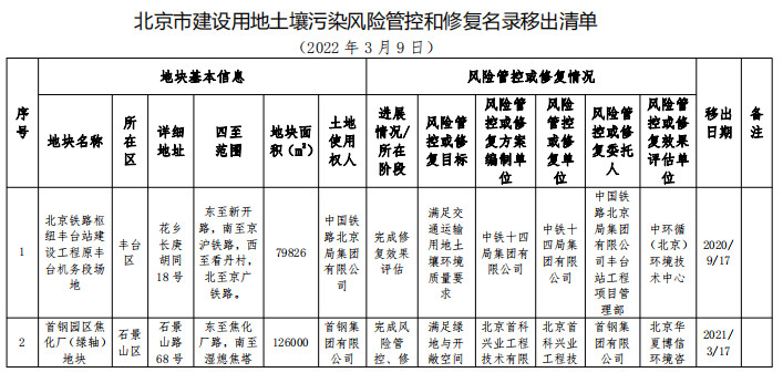 《北京市建設用地土壤污染風險管控和修復名錄移出清單》