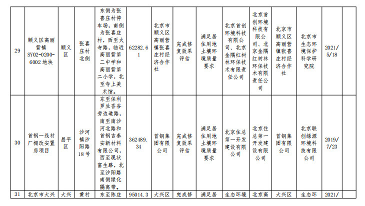 獲悉,3月10日,北京市生態(tài)環(huán)境局發(fā)布北京市建設用地土壤污染風險管控和修復名錄移出清單,共包括32個地塊。詳情如下: