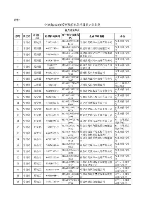 傳 真:0593-2824833《福建寧德市2022年度環(huán)境信息依法披露企業(yè)名單》