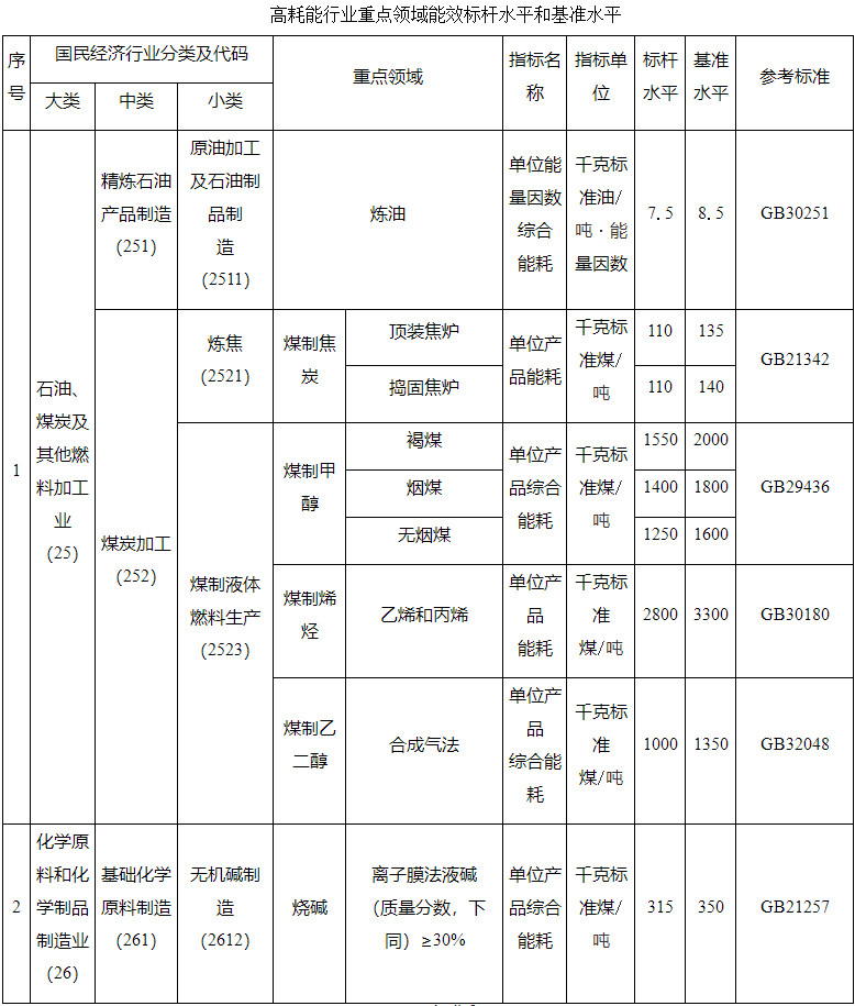 注:1.各領(lǐng)域標桿水平和基準水平主要參考國家現(xiàn)行單位產(chǎn)品能耗限額標準的先進值和準入值、限定值,根據(jù)行業(yè)實際、發(fā)展預(yù)期、生產(chǎn)裝置整體能效水平等確定。統(tǒng)計范圍、計算方法等參考相應(yīng)標準。大牛工程師