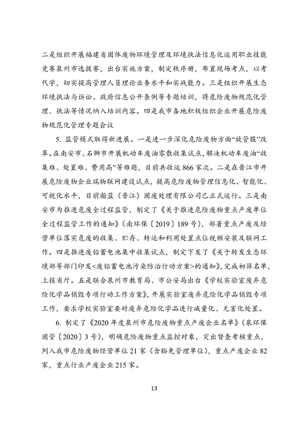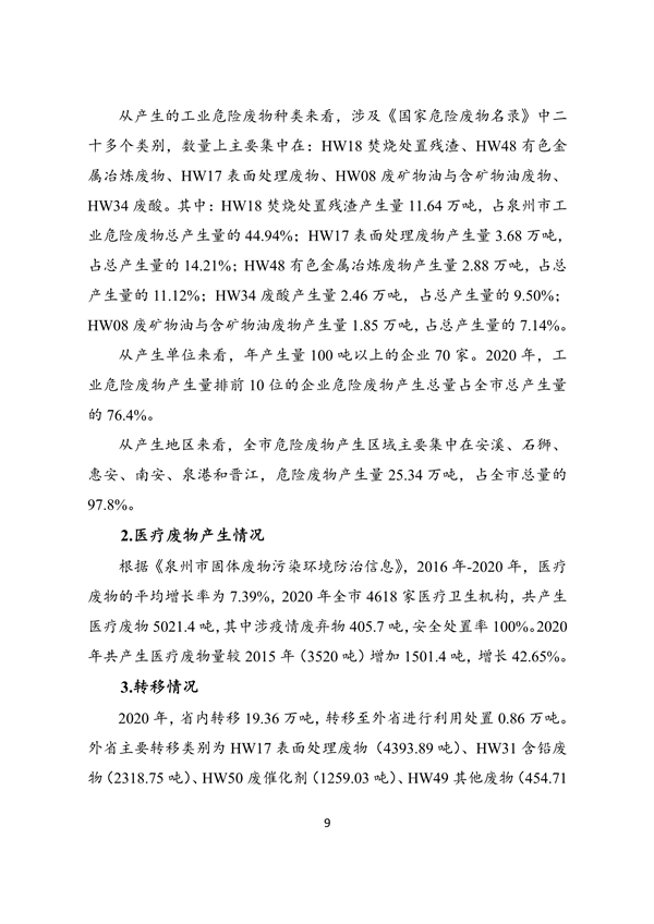 《泉州市“十四五”危險(xiǎn)廢物污染防治規(guī)劃》