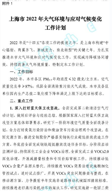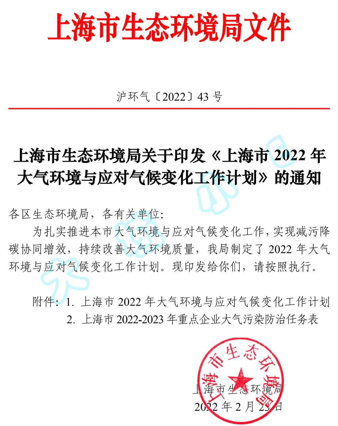 《2022年上海大氣環(huán)境與應(yīng)對(duì)氣候變化工作計(jì)劃》(滬環(huán)氣【2022】43號(hào))
