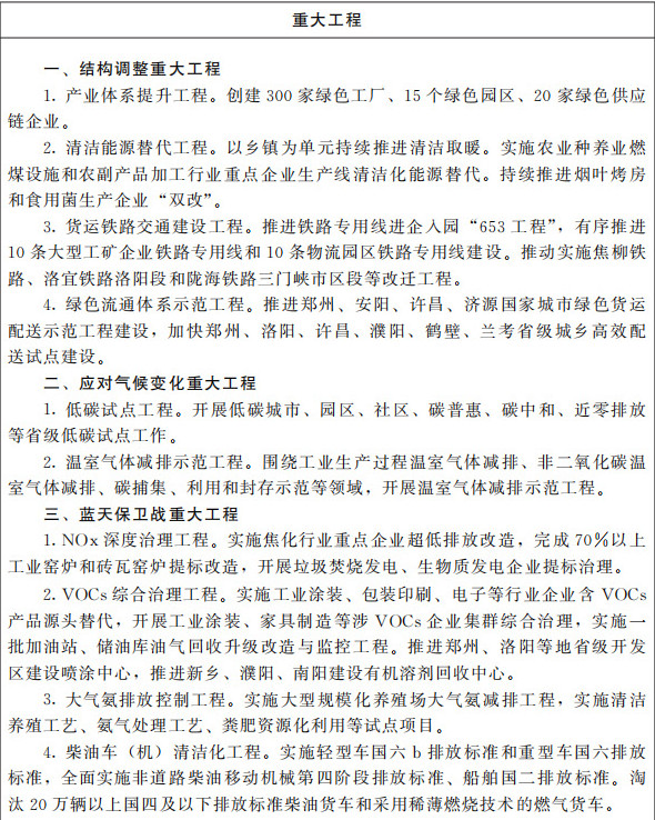 實(shí)施結(jié)構(gòu)調(diào)整、應(yīng)對(duì)氣候變化、藍(lán)天保衛(wèi)戰(zhàn)、碧水保衛(wèi)戰(zhàn)、凈土保衛(wèi)戰(zhàn)、農(nóng)業(yè)農(nóng)村污染治理、生態(tài)保護(hù)與修復(fù)、生態(tài)經(jīng)濟(jì)發(fā)展、環(huán)境風(fēng)險(xiǎn)防控、生態(tài)環(huán)境治理能力提升等10類重大工程。堅(jiān)持省、市、縣三級(jí)協(xié)同聯(lián)動(dòng),建立重點(diǎn)工程項(xiàng)目庫,專項(xiàng)資金優(yōu)先支持。完善協(xié)調(diào)推進(jìn)工作機(jī)制,分期分段推進(jìn),科學(xué)動(dòng)態(tài)調(diào)整。