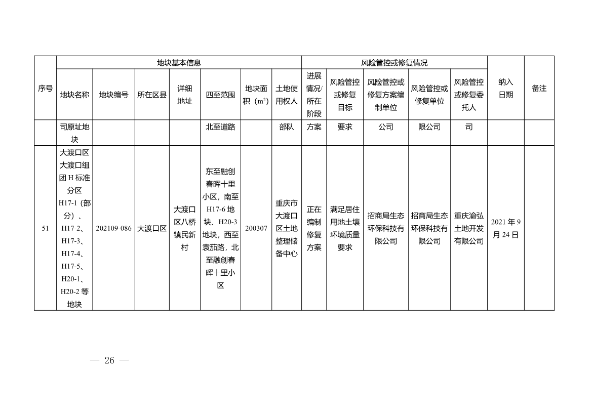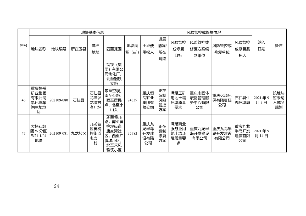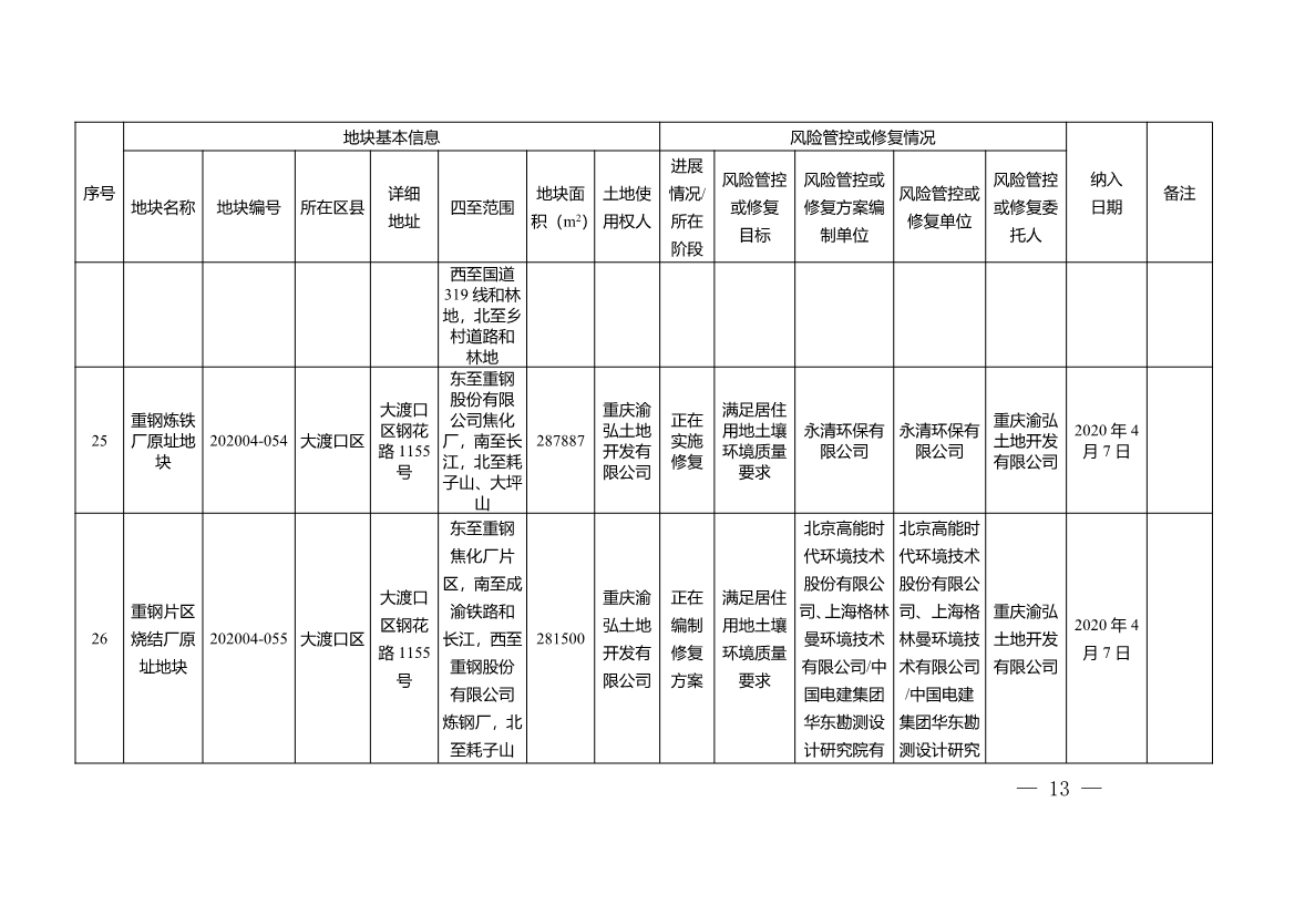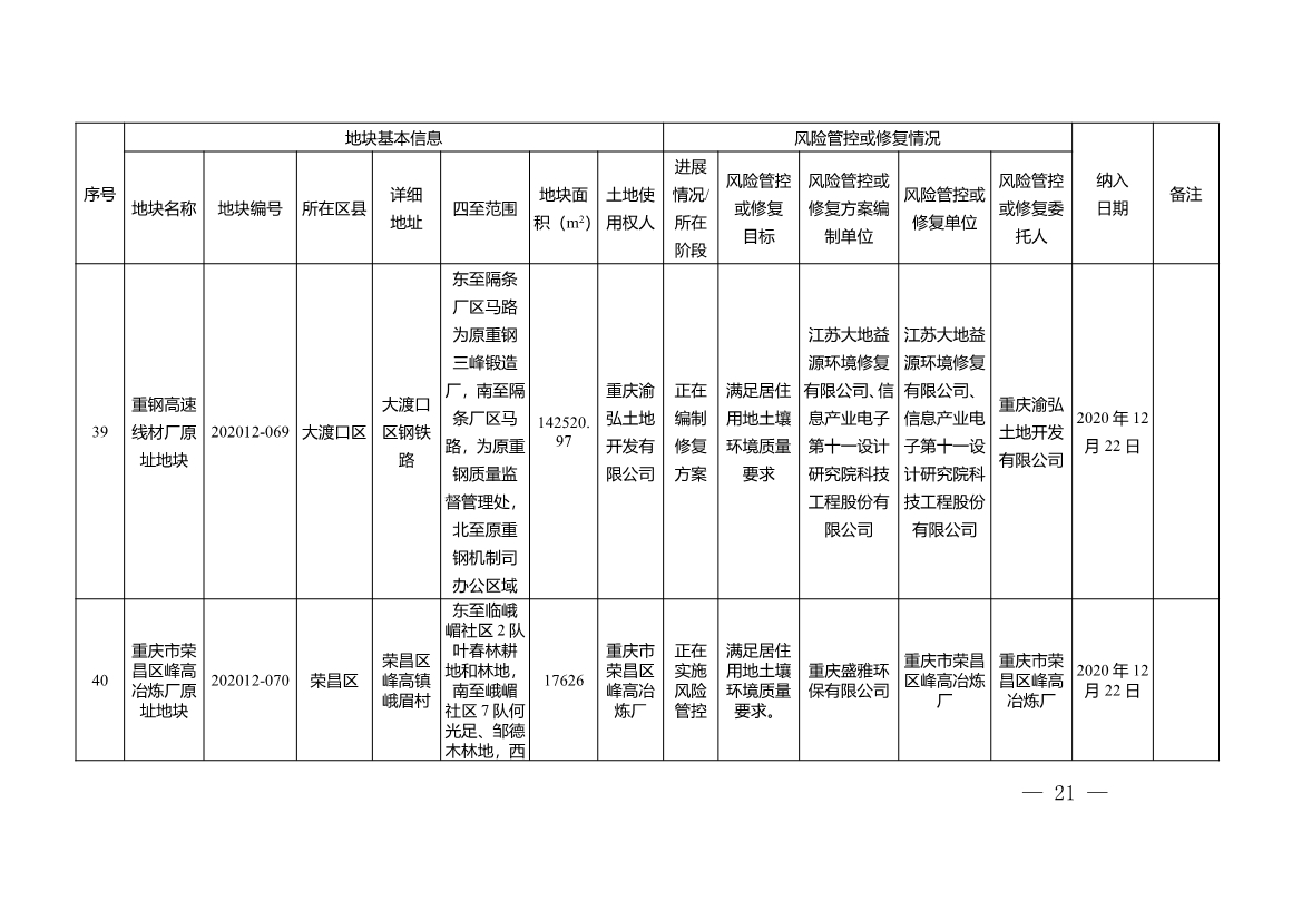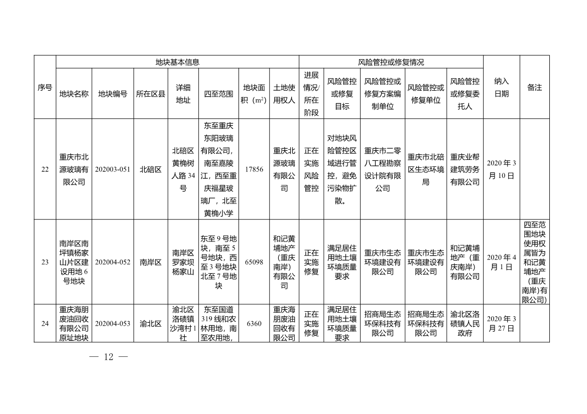 《重慶市建設(shè)用地土壤污染風險管控和修復名錄(2022年1月)》資料下載_工作報告_規(guī)劃綱要