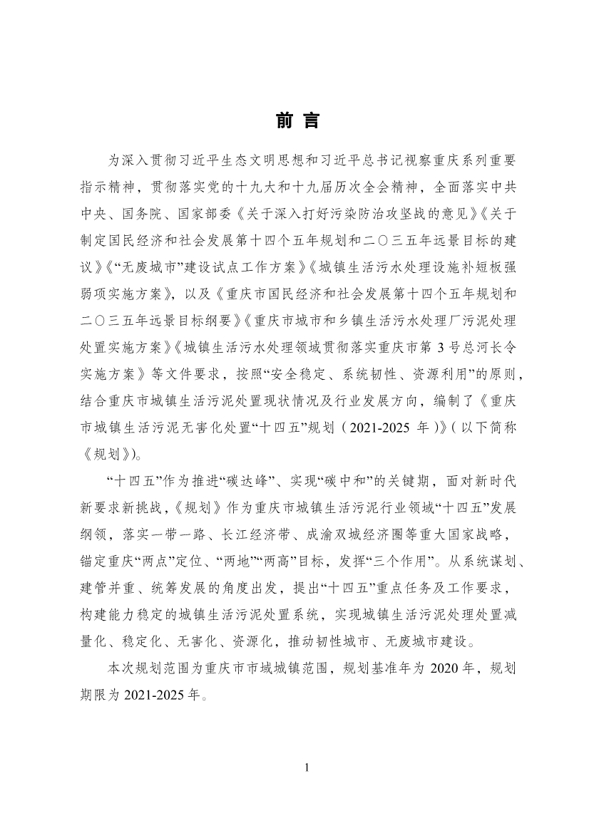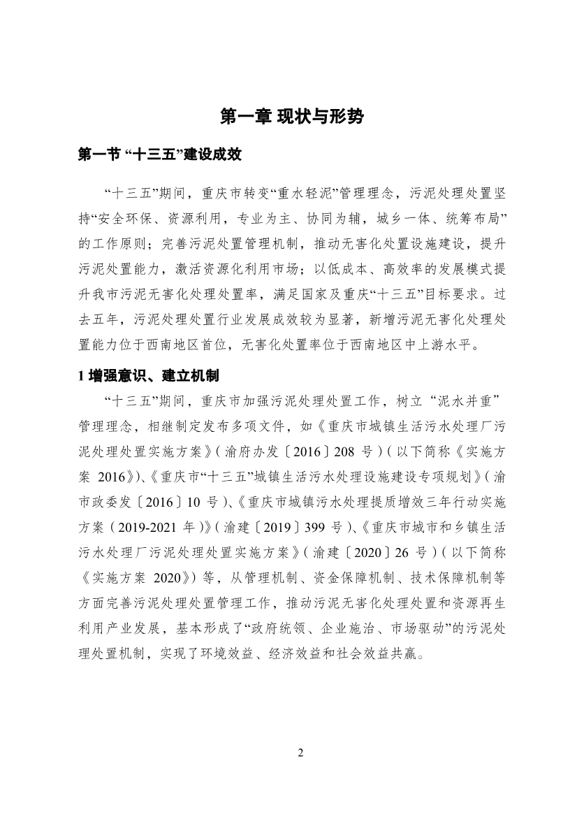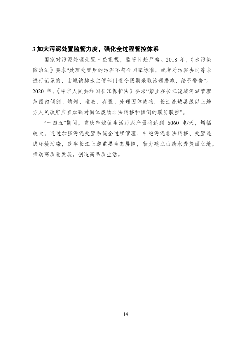 《重慶市城鎮(zhèn)生活污泥無害化處置“十四五”規(guī)劃(2021-2025年)》