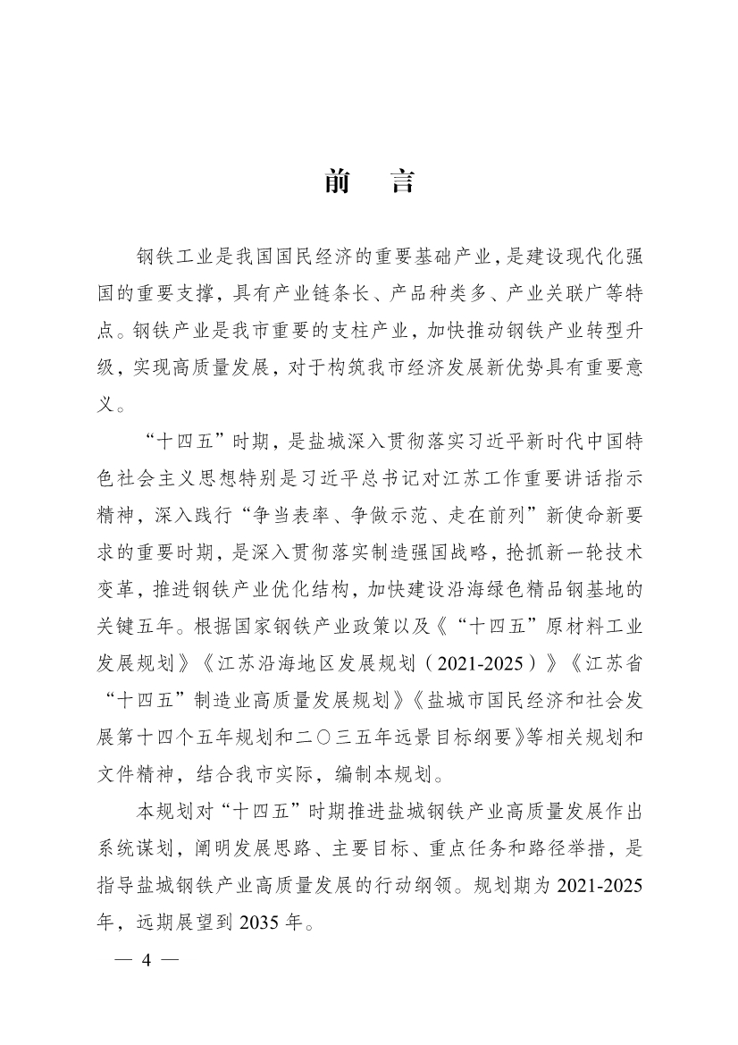 《鹽城市“十四五”鋼鐵產(chǎn)業(yè)高質(zhì)量發(fā)展規(guī)劃》