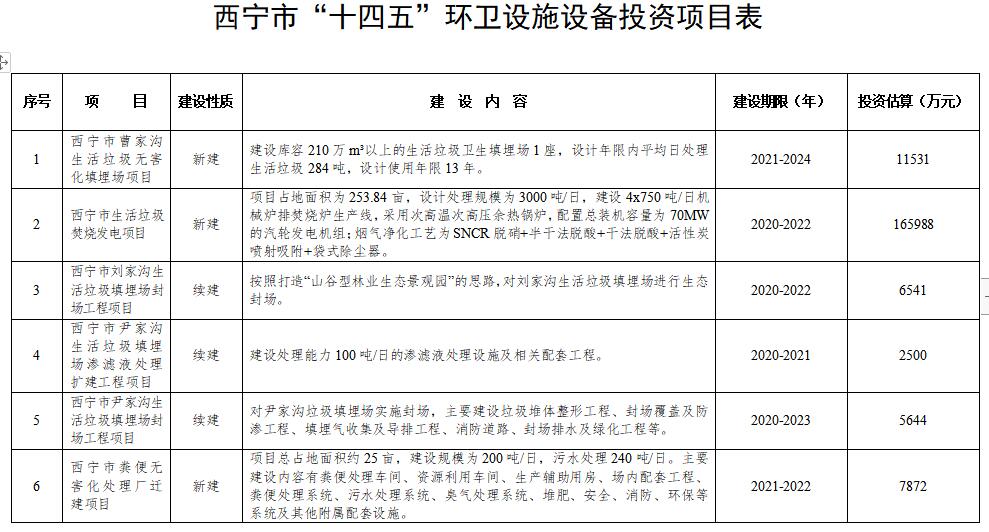 1.“十四五”期間建成日處理能力3000噸的生活垃圾焚燒發(fā)電廠,服務(wù)范圍包括西寧市下轄五區(qū)二縣。