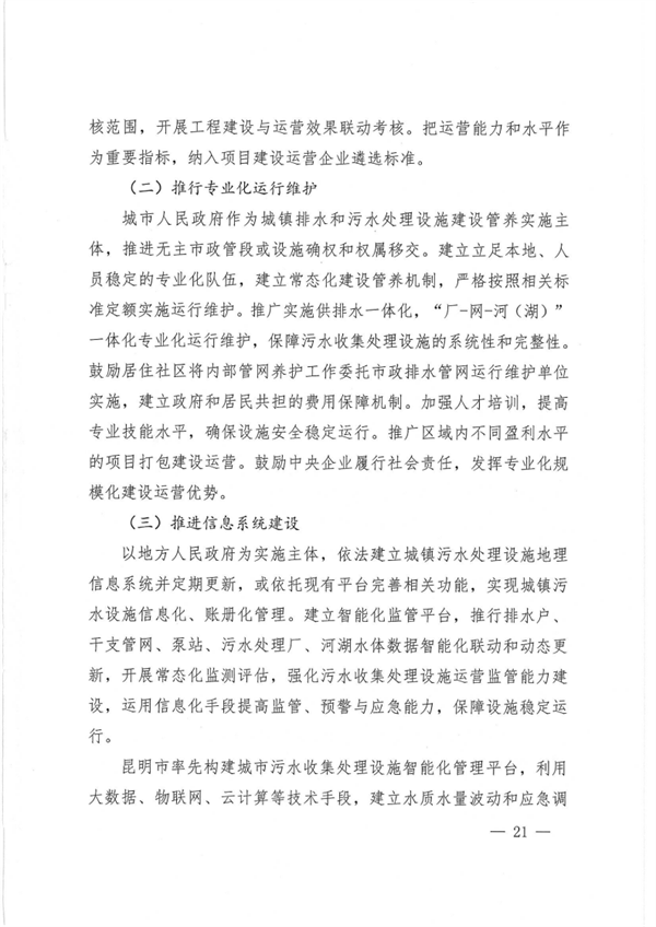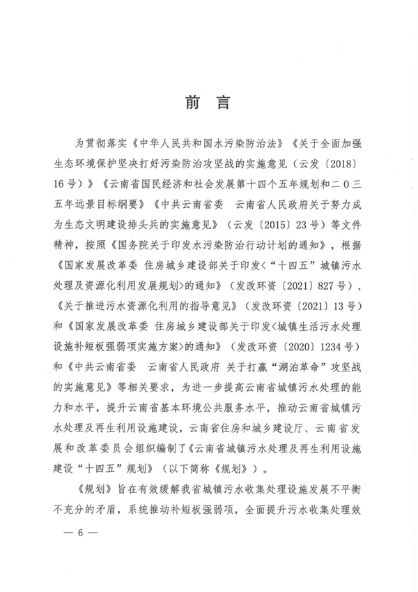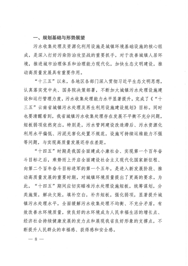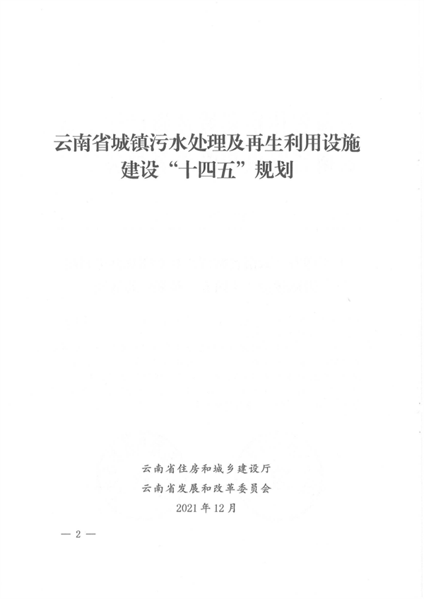《云南省城鎮(zhèn)污水處理及再生利用設施建設“十四五”規(guī)劃》(云建城【2021】195號)