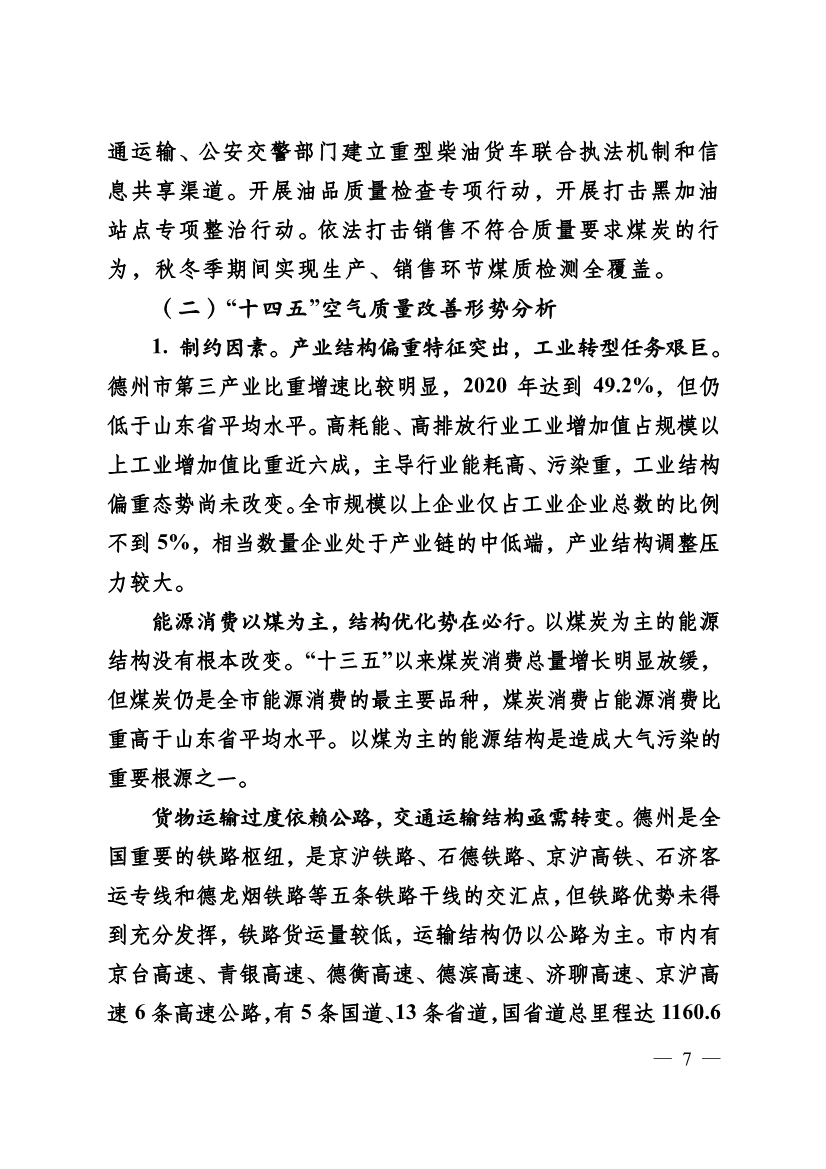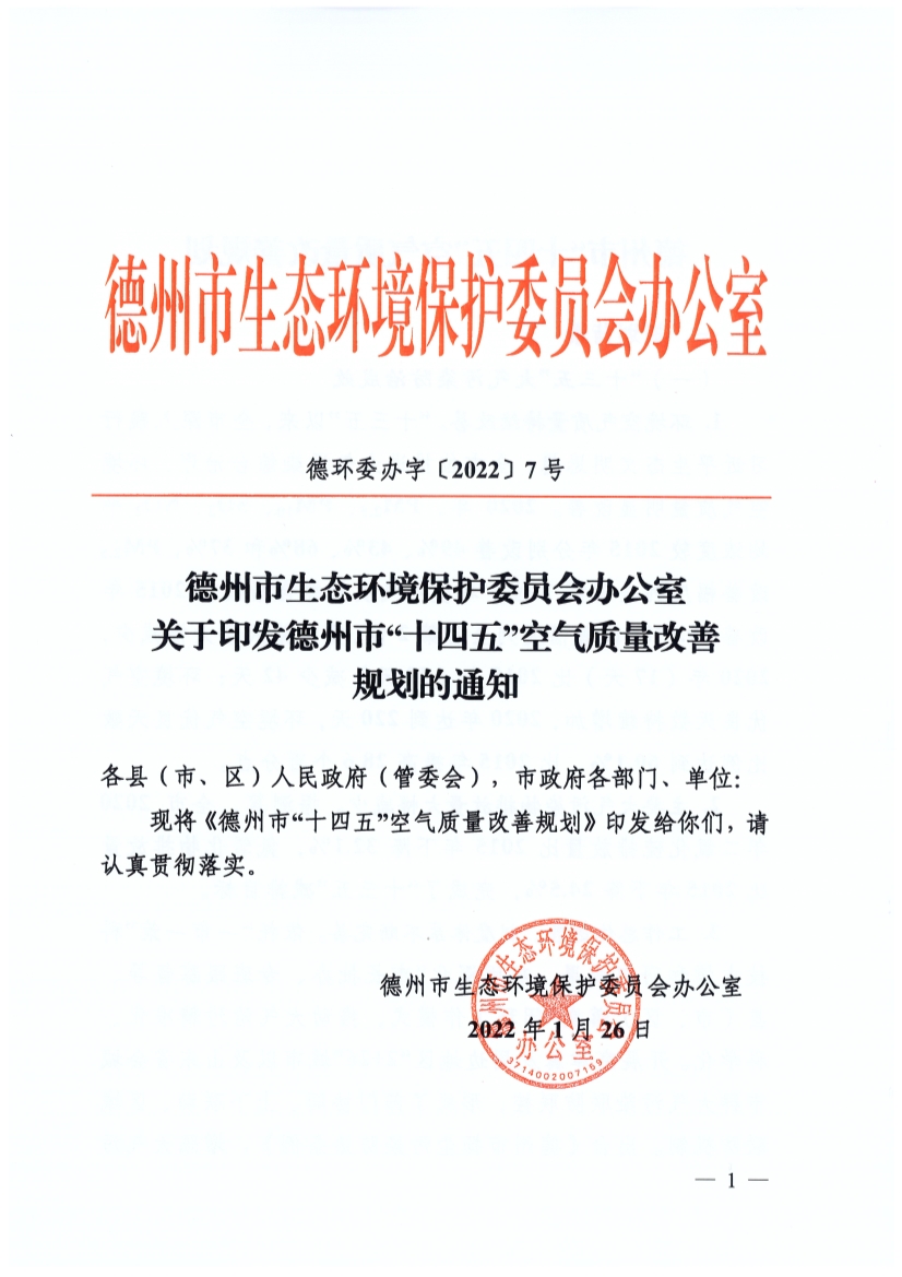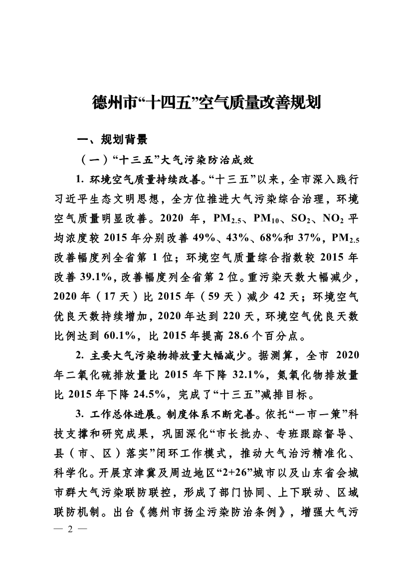 《德州市“十四五”空氣質(zhì)量改善規(guī)劃》(德環(huán)委辦字【2022】7號(hào))
