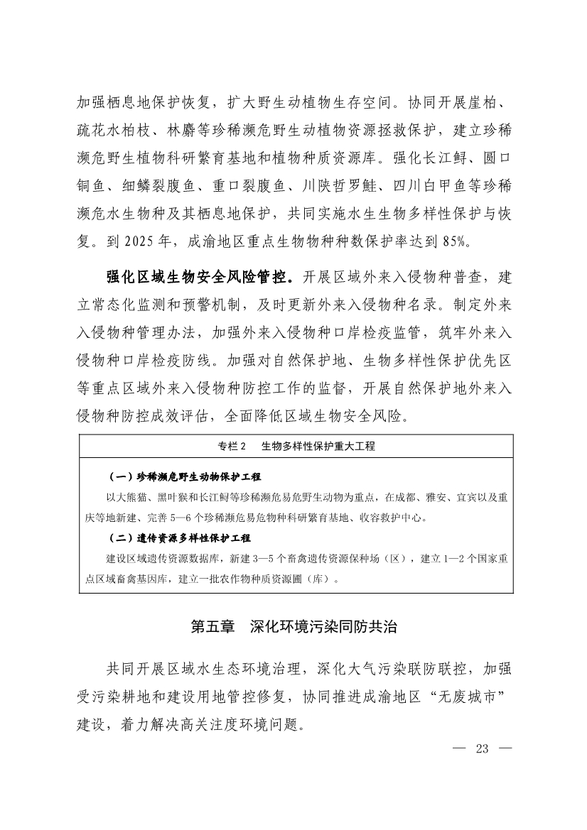 《成渝地區(qū)雙城經(jīng)濟圈生態(tài)環(huán)境保護規(guī)劃》