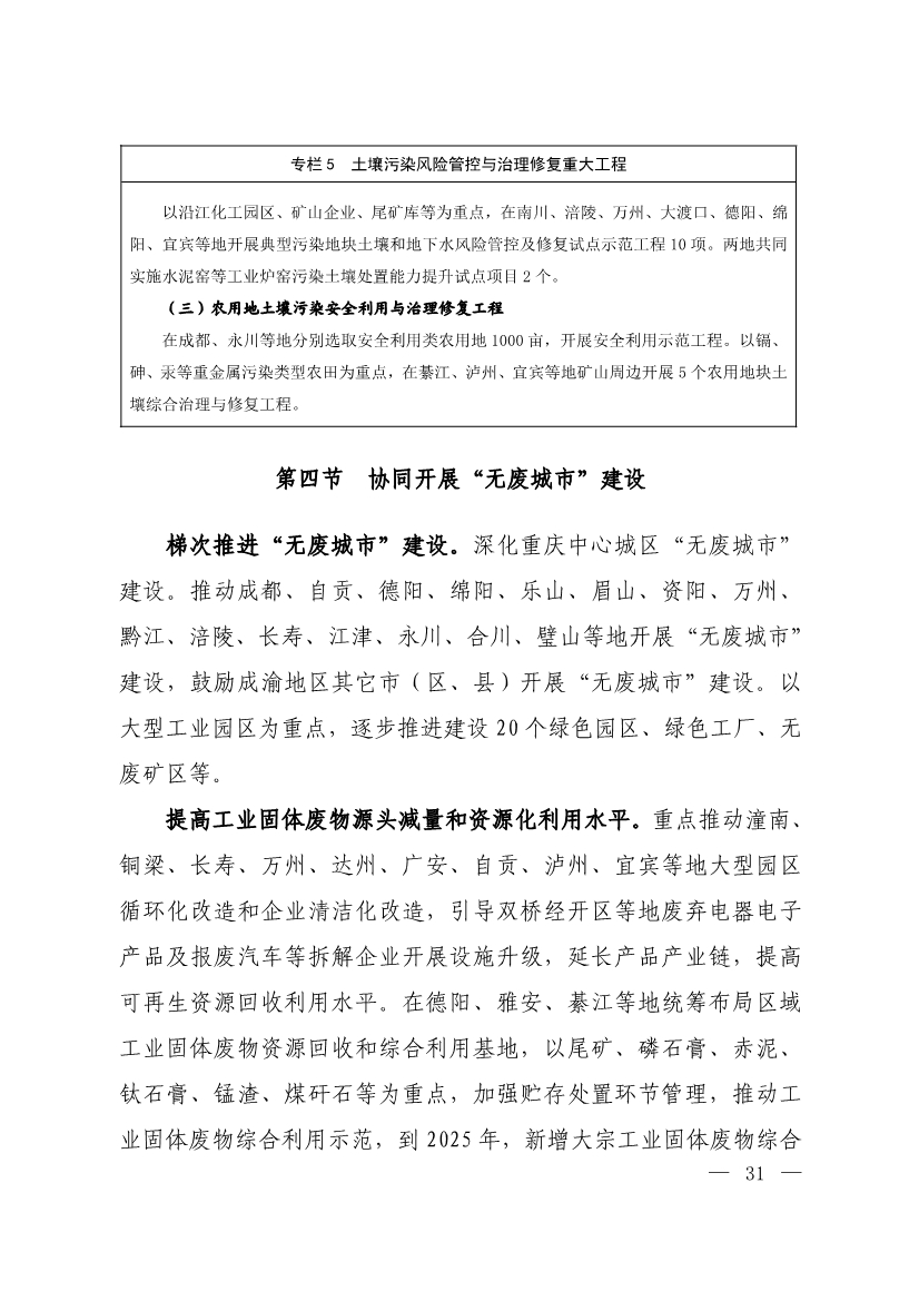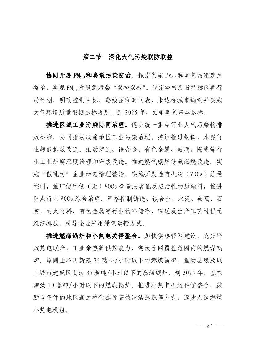獲悉,2月14日,生態(tài)環(huán)境部等部門發(fā)布了關(guān)于印發(fā)《成渝地區(qū)雙城經(jīng)濟圈生態(tài)環(huán)境保護規(guī)劃》的通知,提出到 2025 年,成渝地區(qū)生態(tài)宜居水平大幅提高,生態(tài)安全格局基本形成,生產(chǎn)生活方式綠色轉(zhuǎn)型取得顯著成效,單位 GDP 二氧化碳排放降低 19.5%,城市開發(fā)模式更加集約高效,突出環(huán)境問題得到有效治理,地級及以上城市空氣質(zhì)量優(yōu)良天數(shù)比率不低于 89.4%,PM2.5濃度下降 13%以上,跨界河流國控斷面水質(zhì)達標率 100%,城鄉(xiāng)環(huán)境基礎(chǔ)設(shè)施更加完善,生態(tài)環(huán)境協(xié)同監(jiān)管取得明顯成效,區(qū)域協(xié)作機制和生態(tài)保護補償機制更加完善,精細化治理能力顯著增強,美麗中國先行區(qū)建設(shè)取得顯著進展。到 2035 年,成渝地區(qū)生態(tài)安全格局全面筑牢,能源資源利用效率進一步提升,綠色生產(chǎn)生活方式廣泛形成,碳排放達峰后穩(wěn)中有降,生態(tài)環(huán)境質(zhì)量根本好轉(zhuǎn),現(xiàn)代環(huán)境治理體系全面完善,美麗中國先行區(qū)基本建成。