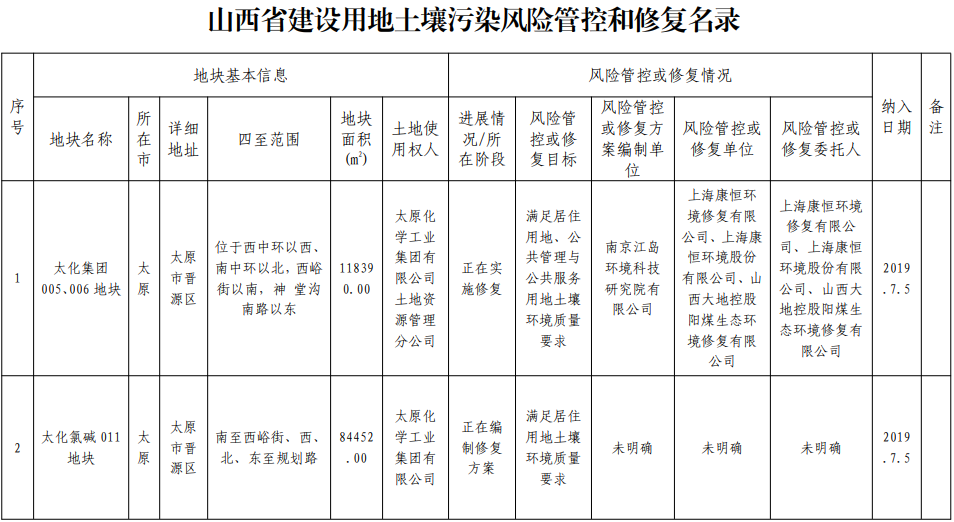 1.山西省建設(shè)用地土壤污染風(fēng)險管控和修復(fù)名錄