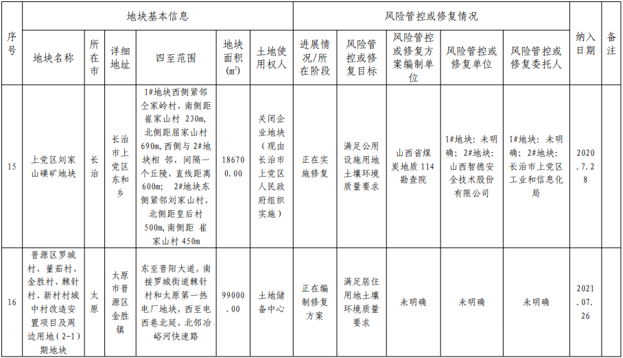 2.山西省建設(shè)用地土壤污染風(fēng)險管控和修復(fù)名錄移出清單