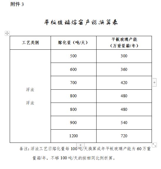 3.平板玻璃熔窯產(chǎn)能換算表