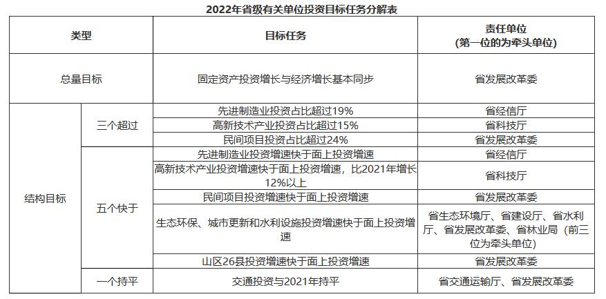 1.擴(kuò)大有效投資。確保2022年全省固定資產(chǎn)投資增長與經(jīng)濟(jì)增長基本同步。