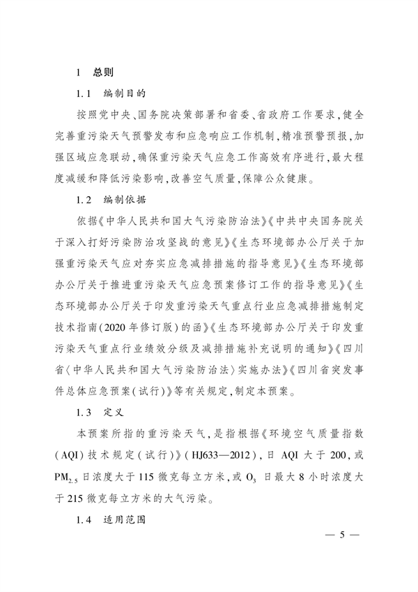 《四川省重污染天氣應(yīng)急預(yù)案(試行)》