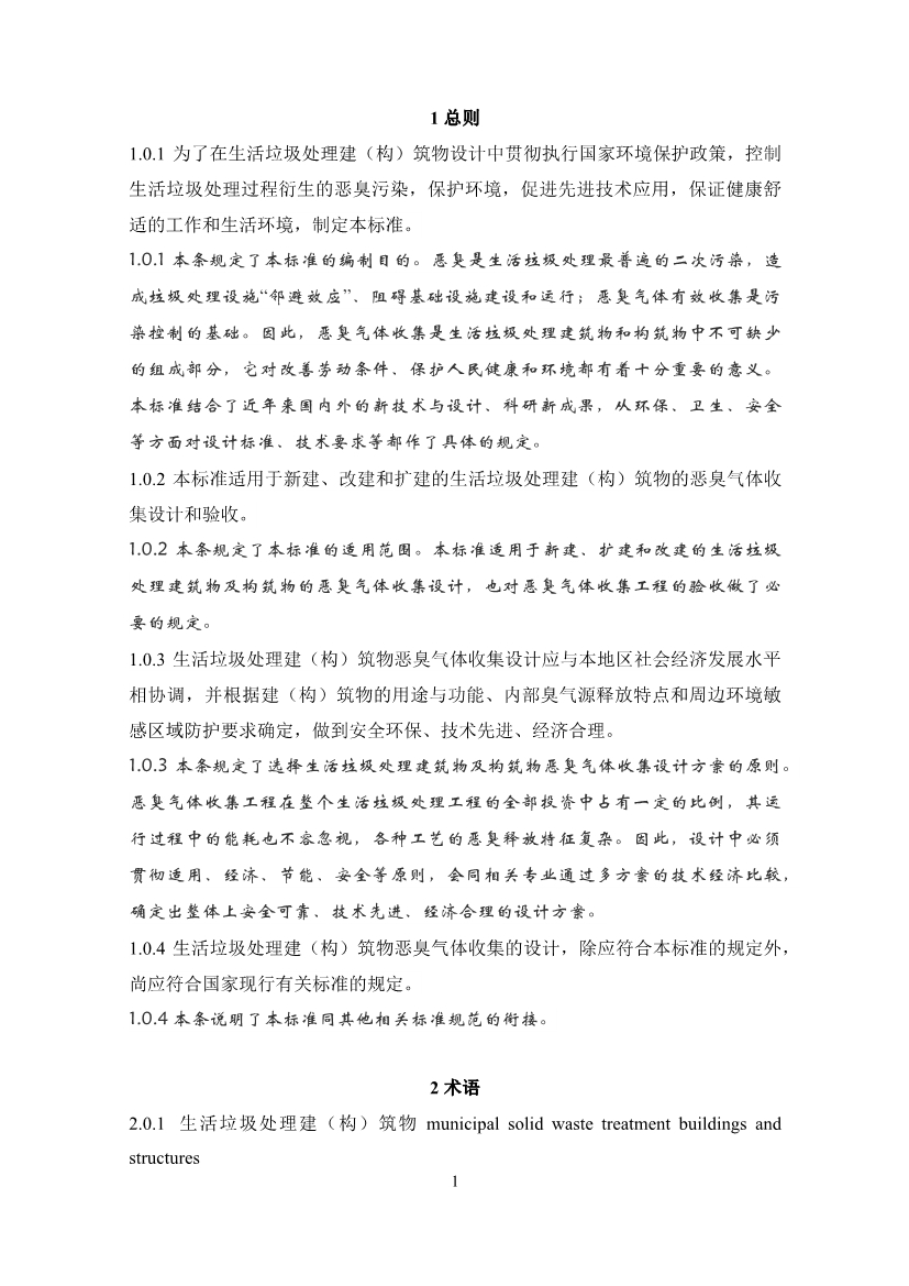 《生活垃圾處理建(構(gòu))筑物惡臭氣體收集設(shè)計標(biāo)準(zhǔn)》(征求意見稿)